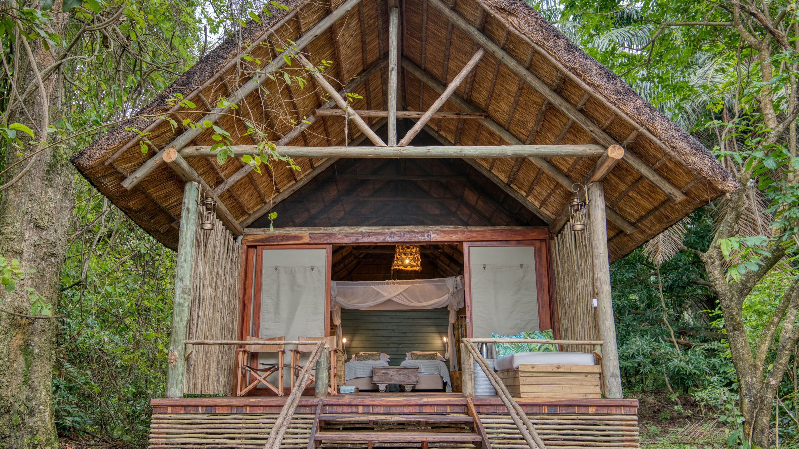 Quite romantically located on sandy white beaches of Lake Tanganyika with the Mahale Mountains as a backdrop, this lodge is an activity rich retreat with a bit of luxury thrown in. Each of the nine tents have four poster beds and are raised up on hardwood floors with the forest subtly creeping up behind them. The private patio areas are perfect for a morning coffee while enjoying views over the clear waters of the lake and the odd splash as fish chase their breakfast in the calm waters.