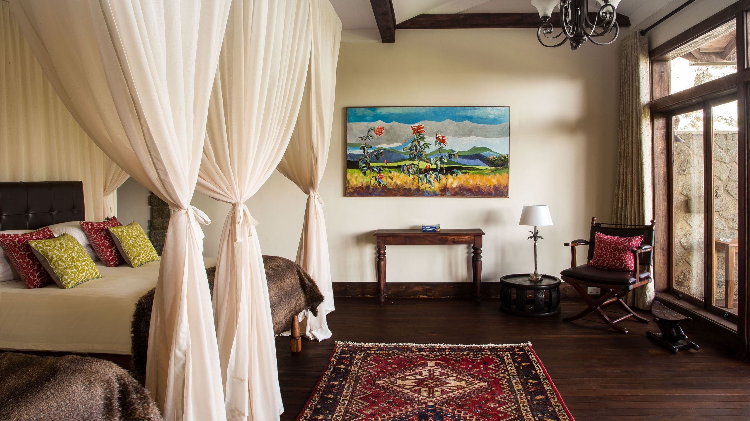 This is a wonderfully comfortable and charming lodge, set in a working farm within the Ngorongoro Conservation Area. A short drive from the famous Ngorongoro Crater surrounded by forest and gardens Gibb’s Farm gives you some peace and quiet away from the bustling traffic that congregates around the busy crater rim. This interesting working farm is a great place to get out of the safari vehicle and walk the 95 acres of farm and forest that make up Gibb’s. The farmhouse itself is surrounding by rather charming English gardens and where you can simply relax and enjoy the organic coffee that is processed and roasted just outside the door of the lodge.