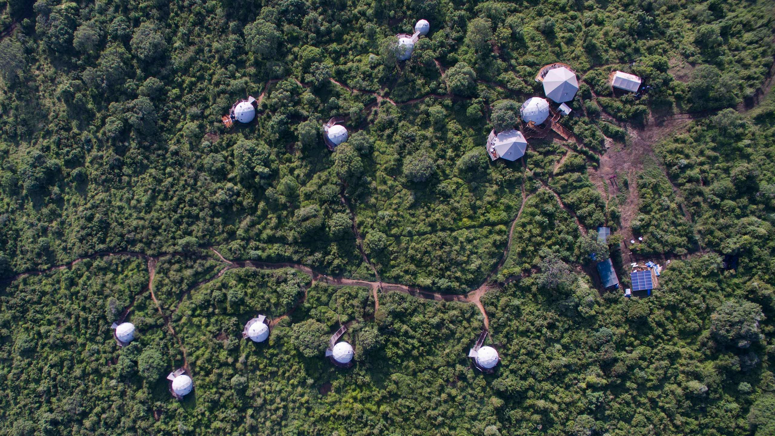 Eight domed perspex-and-canvas suites offer king-sized beds with floor-to-canvas-ceiling bay windows opening out to the spectacular views, en-suite bathrooms and wood-burning stoves for the cold winter evenings. One is designed to accommodate two adults and two children and the honeymoon suite is a little bit more private with a large elevated deck and an outdoor hot tub.