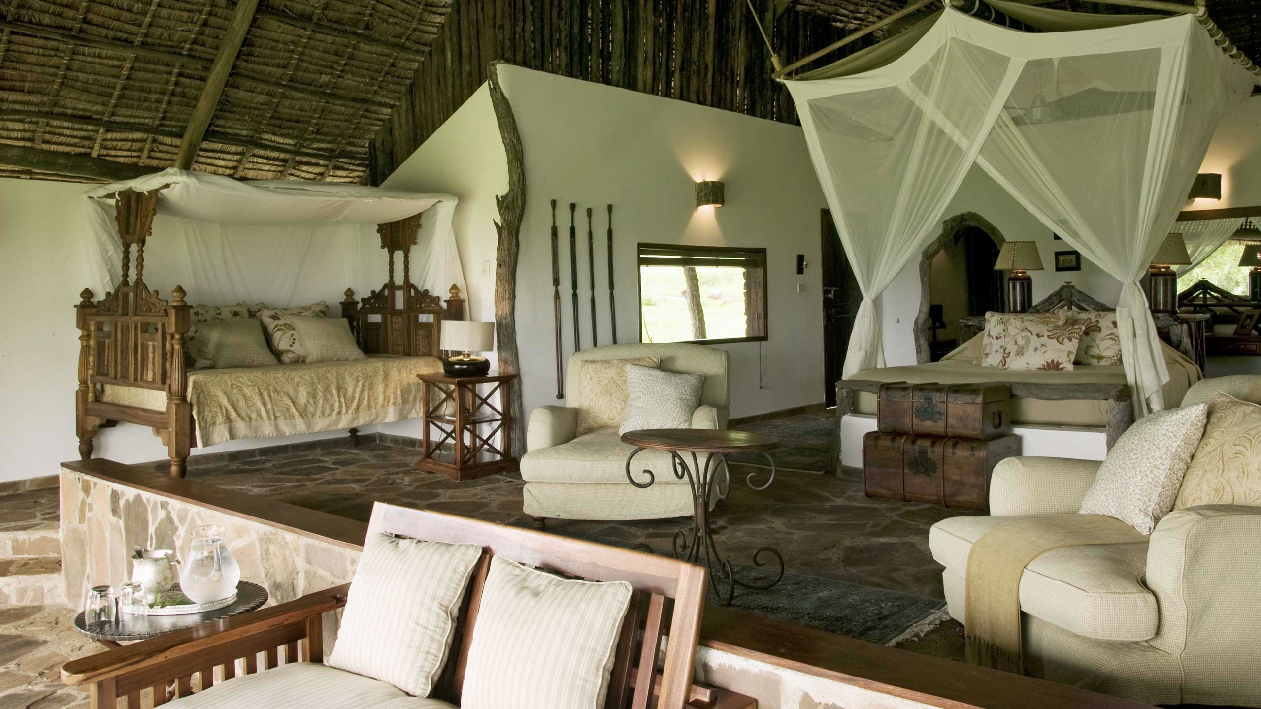 Furnished in the style of a private house with comfortable seating and dining areas the most noticeable thing in the Main House is that there are few walls. Shaded and protected by a huge palm thatched roof there is also a full sized billiards table, the Eagle’s nest for private dining and lots of cosy nooks. Meals are a moveable feast and are not confined to the formal dining area. There are several lookouts where breakfast and lunch are served and of course areas for dining under the stars. Bush Breakfasts and picnics are also arranged for longer safaris.