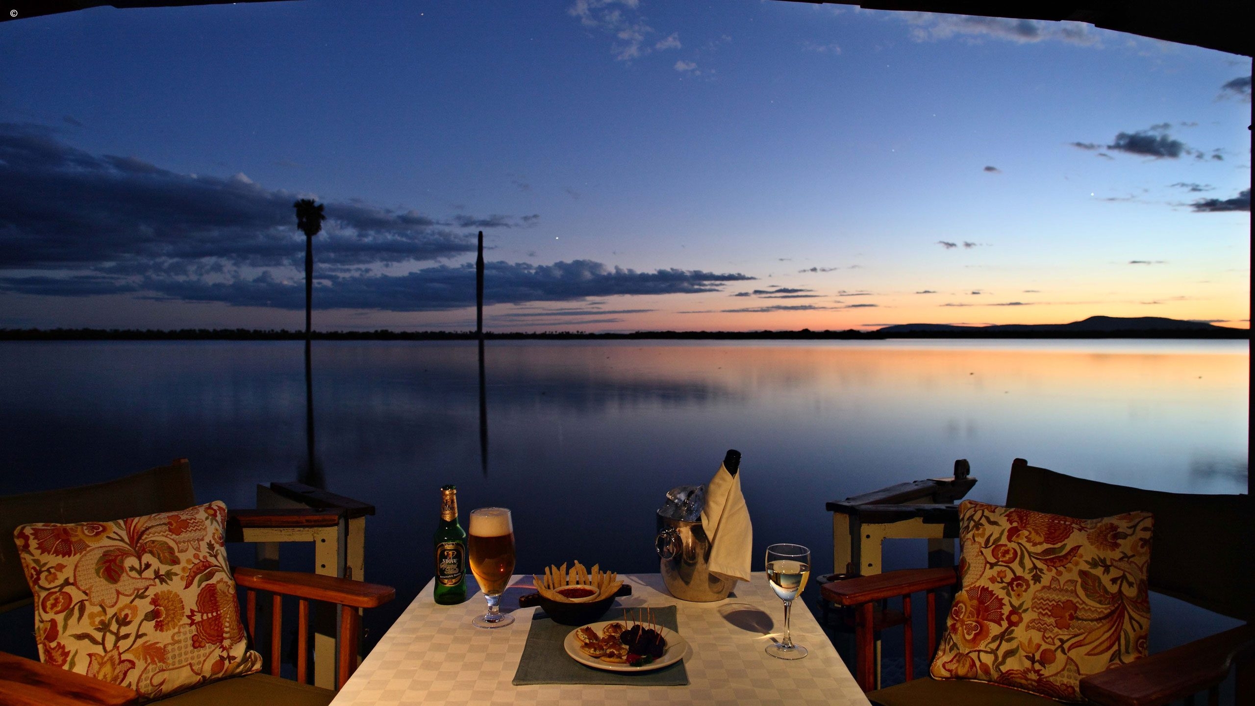 Sheltered by a forest of palms, this beautiful lodge sits right on the banks of a lake formed by the Rufiji River that flows through this massive ecosystem.