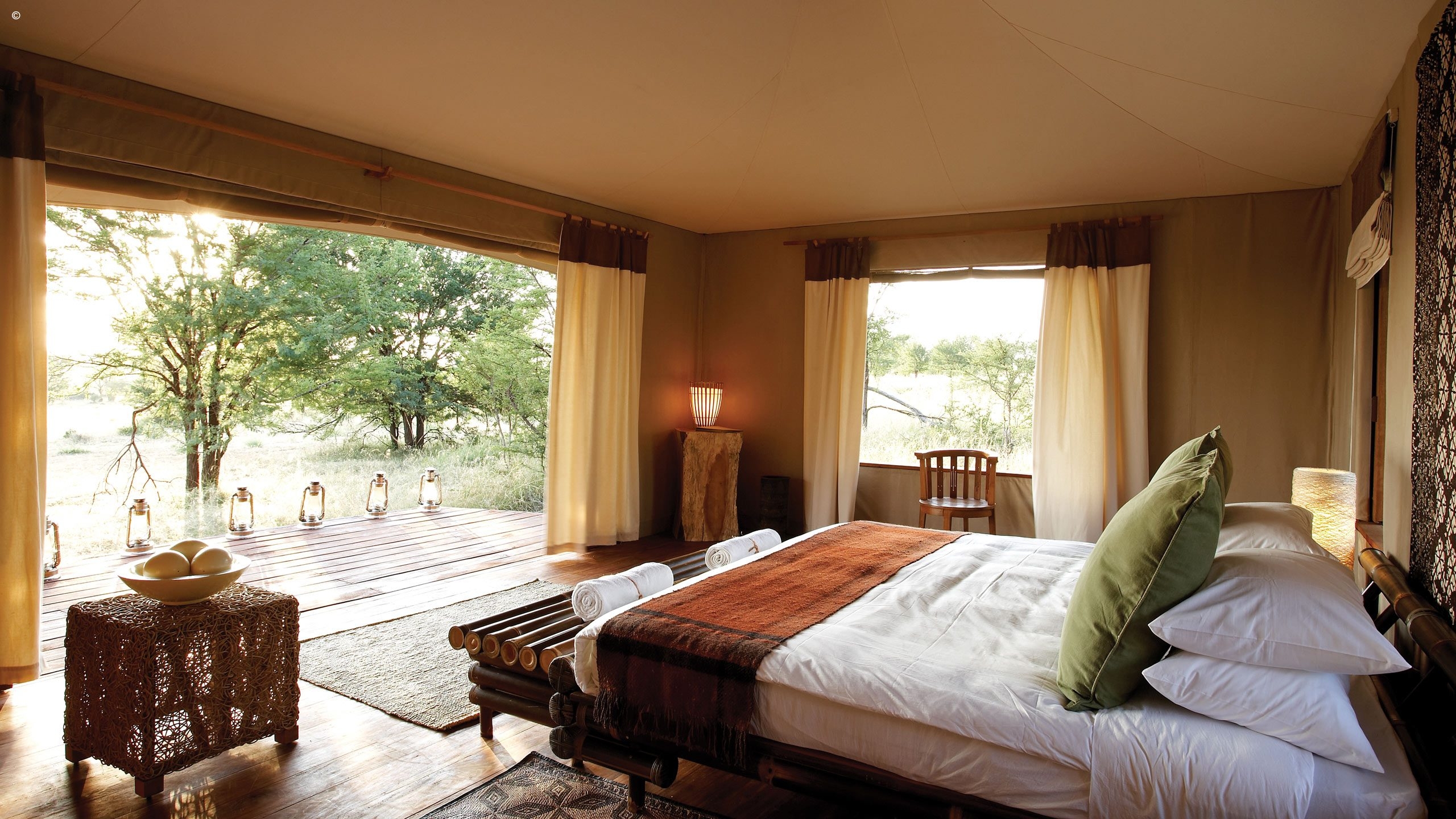 A larger scale of luxury based in the northern part of the Serengeti, Sayari has 15 permanent raised-deck tents with wide deck verandas that overlook the bushy scrubland around the camp.