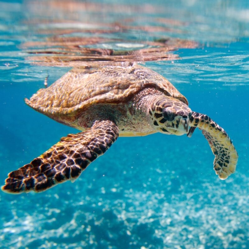 Explore the islands five marine parks and discover diverse biodiversity and abundant underwater wildlife such as whale sharks in the waters off Fregate island