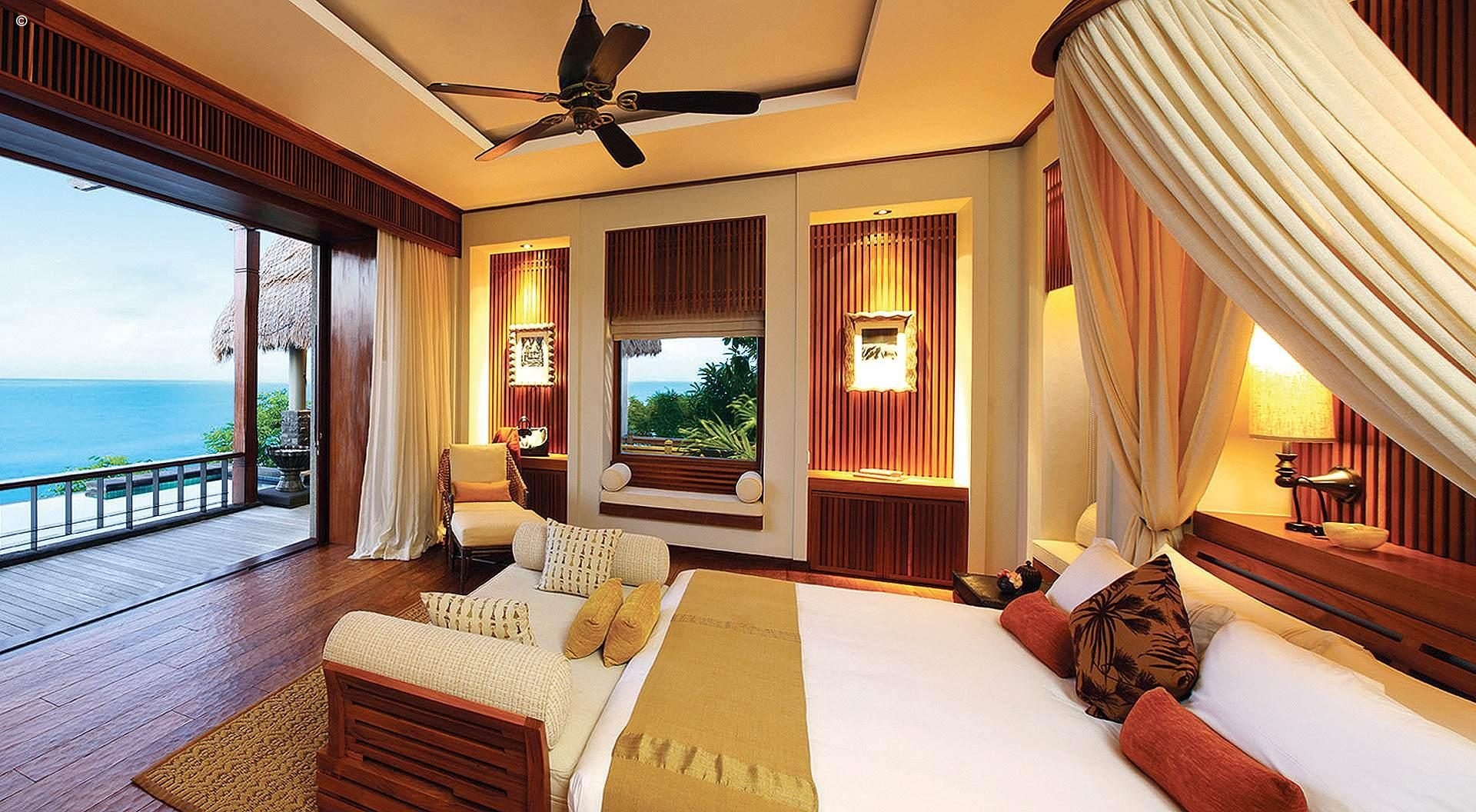 Each of the 30 spacious villas features an air-conditioned bedroom, private infinity pool, an en-suite bathroom with concealed garden-view shower, an enormous outdoor bath stocked with extravagant Hermès amenities, and gazebo with dining facilities, bar and voluminous day bed. You’ll also enjoy the personalized and intuitive service of a dedicated butler. The Ocean Panoramic Villas are just a few steps away from the beach.