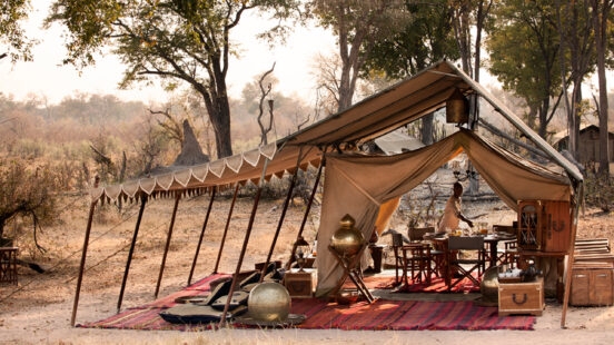 Moremi Mobile Tented Camp offers a real treat for those looking to completely switch off on their safari. A superbly luxurious mobile camp, with Moremi as your base you’ll spend your days travelling around some of the most remote parts of the game Okavango. Don’t let its remoteness fool you – plush beds, Persian rugs and fantastic food are all there to welcome you back after a long day out.