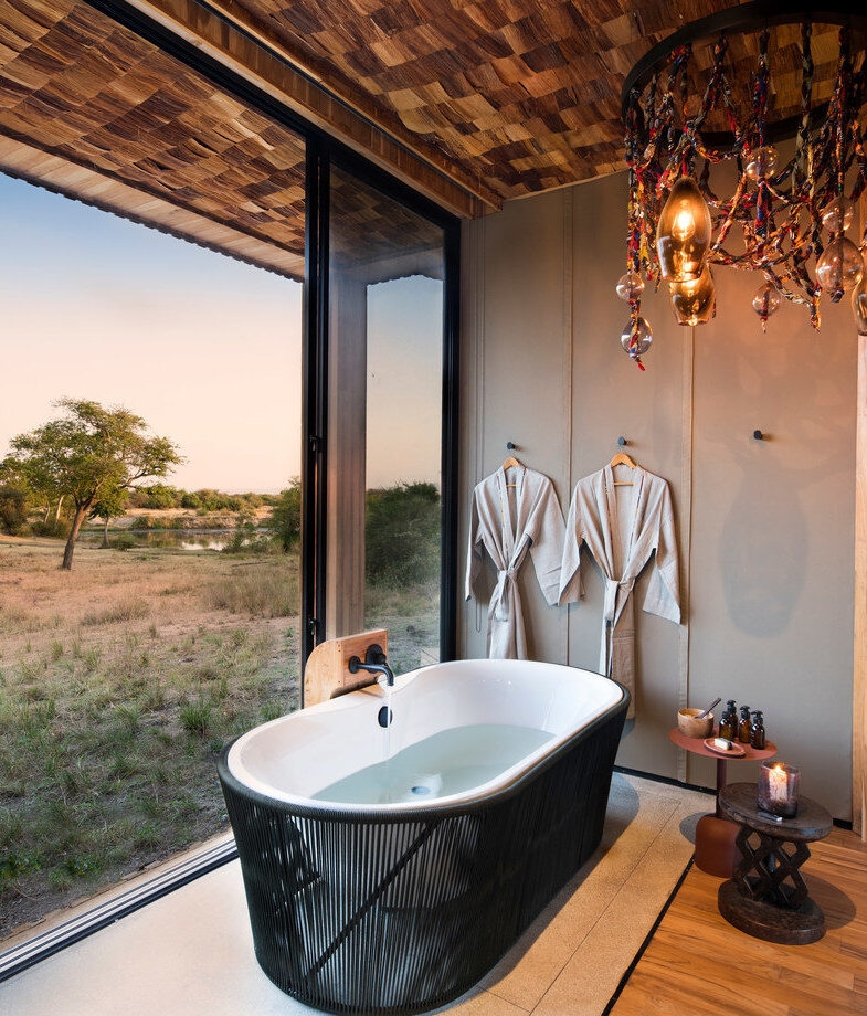 Located within the Sabi Sands Game Reserve, Lion Sands Ivory Lodge has eight glass-walled villas that reveal sweeping views of the Sabie River. The decor is contemporary yet rooted in African design, with natural stone, timber and textiles. Each villa features a private infinity pool and deck, providing serene wildlife viewing in complete seclusion. The lodge also offers sleep-out treehouses, where you can spend a night beneath the stars surrounded by the sounds of the bush.