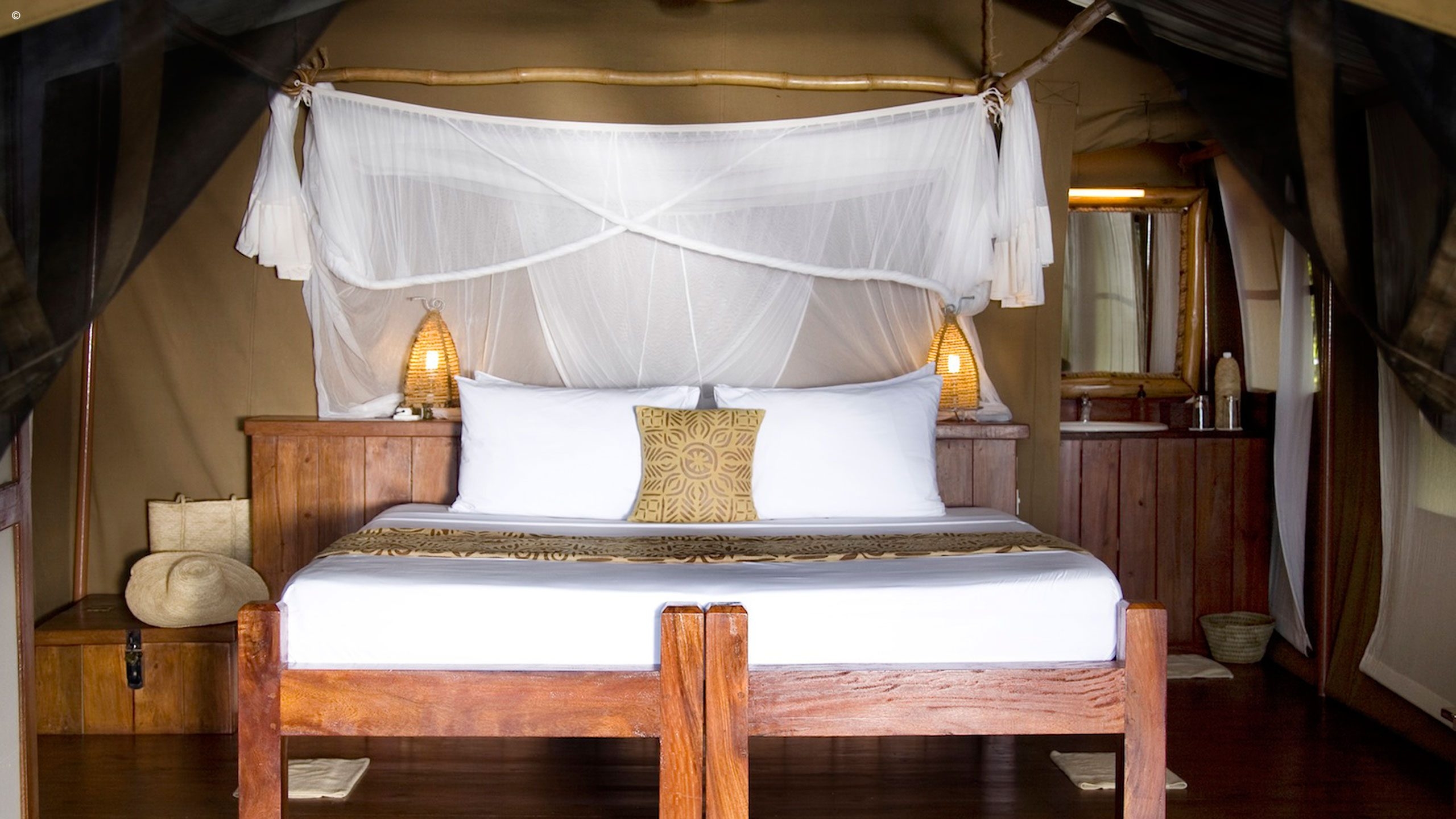 Its accommodation hugs the shoreline in the form of 18 traditional Makuti thatch tented rooms, and each comes with: either double or twin beds, hot en suite showers, ceiling fans and are all moments away from the sparkling Indian Ocean.
