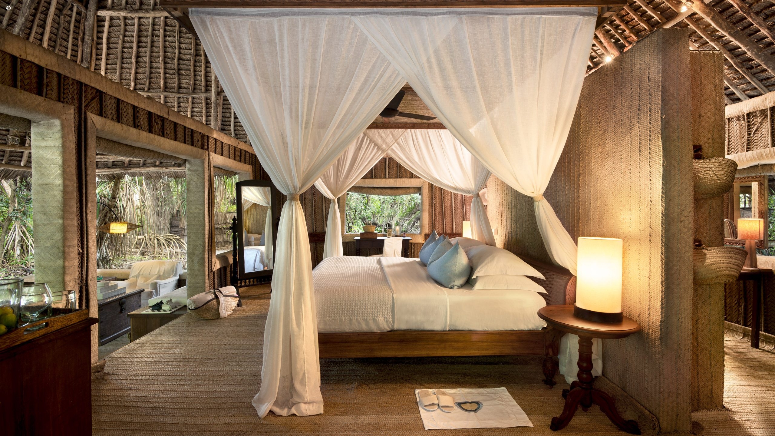 Ten luxury Zanzabari banda houses are hidden into the island’s Casuarina pine forest whose cooing wild doves and adorable Suni deer make it a very romantic Swiss Robinson world. Each of the bandas are designed to let as much of the outside in with an open plan set out, walls made of coconut matting rolled up to reveal Indian Ocean views, big beds and sofas dressed in plumped-up white linens, handmade furniture, a dressing room, private verandas and an en-suite bathroom. What’s more, apart from the deer and doves the only other people you share the island with are the other guests and staff.