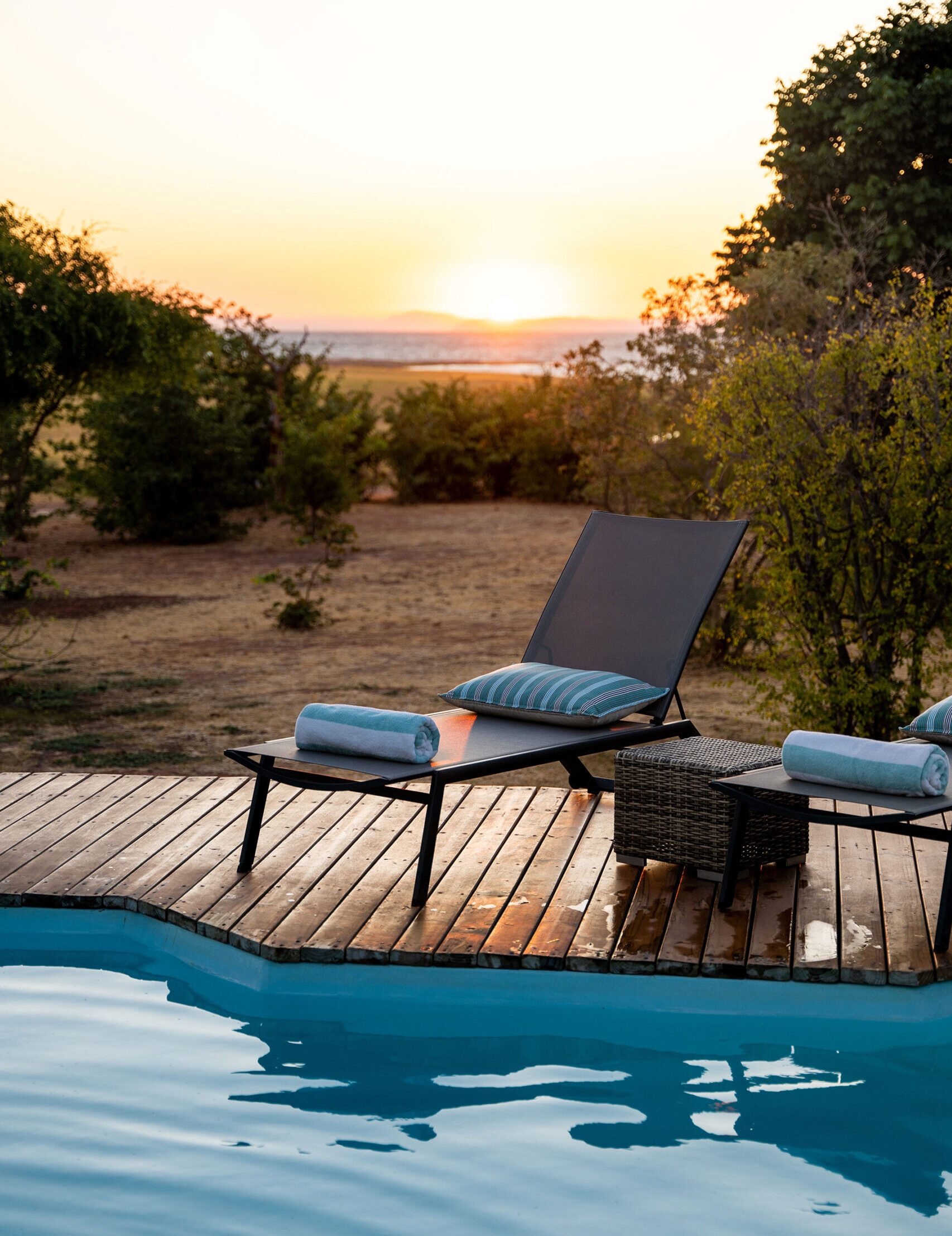 Set within the pristine Matetsi Private Game Reserve along an exclusive 15km (9 mile) stretch of the Zambezi River a little upstream from Mosi-oa-Tunya, Matetsi River Lodge perfectly combines fine safari with easy access to the thrills and adventure of Victoria Falls. The River Lodge comprises of two intimate camps of just nine suites each, including two family suites. All the suites are modern yet of the vernacular, with clean lines softened by local craft pieces and repurposed materials. En suite bathrooms boast indoor and outdoor showers as well as a deep bath which looks out over the Zambezi. A private veranda offers a refreshing plunge pool and a peaceful sitting area that overlooks the river. At the heart of each camp is a communal area with a variety of dining spaces, an interactive kitchen, convivial bar area and an al fresco area that encircles a blazing fire bowl, all with unifying theme of a wood and copper, the ‘red gold’ of the country’s historical mining industry.