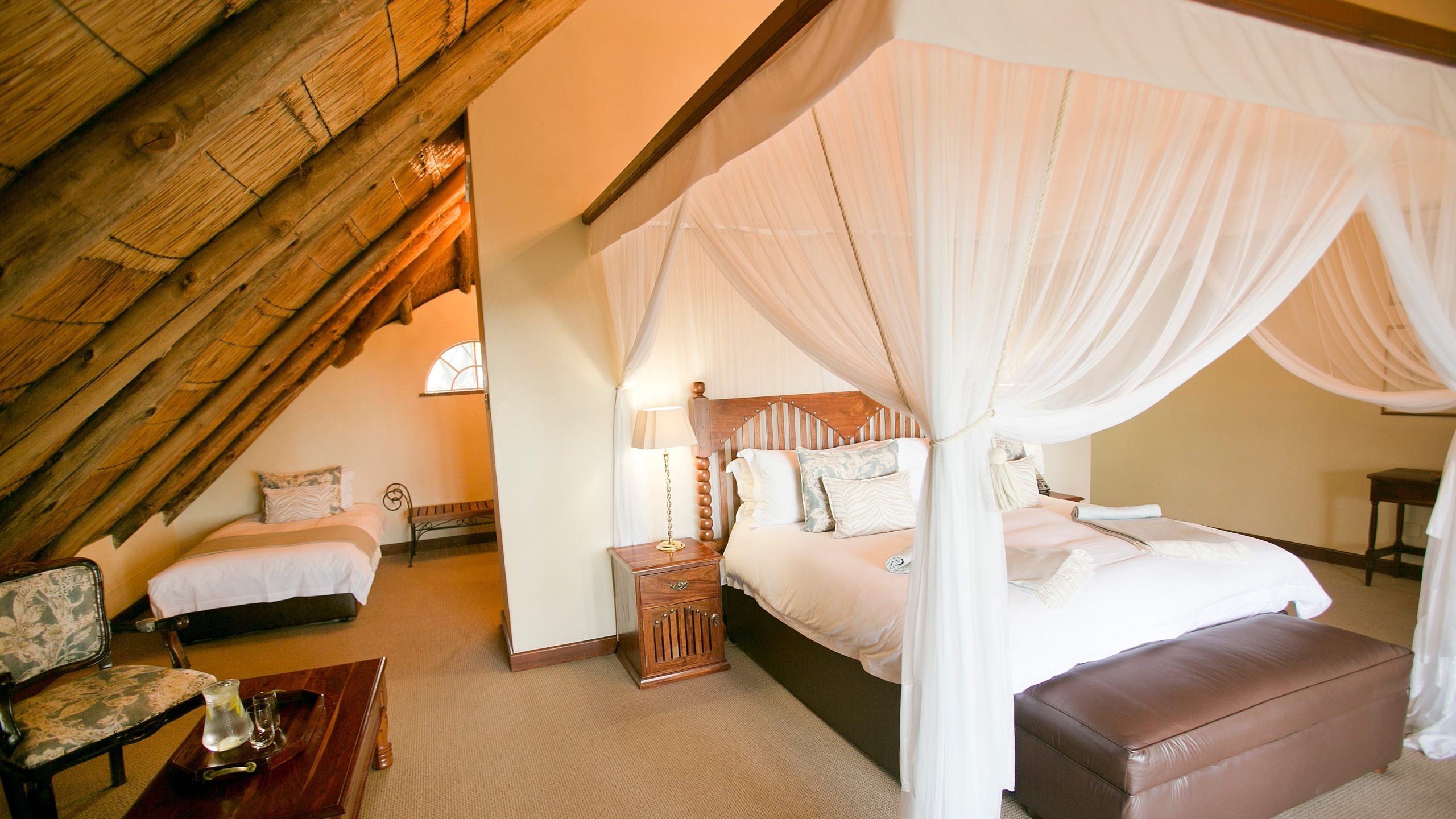 Rooms on the upper-tier boast their own private balconies, while those on the lower floor open onto the exquisitely manicured gardens. Look out for visiting wildlife like warthogs, and even the occasional elephant!