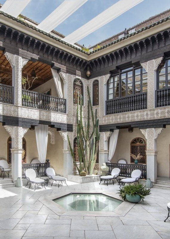 Entering La Sultana Marrakech feels like finding a secret hideaway deep in the labyrinthine medina of Marrakesh. Encompassing various hidden courtyards, a scenic roof terrace, a courtyard swimming pool, a vaulted pink marble spa and three decadent dining spaces serving Moroccan and Mediterranean cuisine, this boutique hotel almost seems like a world of its own. Each of its 28 rooms and suites is intricate and colourful, evoking a quintessentially local version of luxury that retains a sense of history and authenticity.