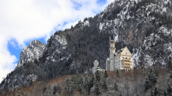 On the southern edge of Bavaria, Neuschwanstein Castle overlooks the picturesque village of Schwangau. This 19th-century palace is tucked into the foothills of the Alps, its towers and turrets emerging from the treetops like something out of a fairytale.