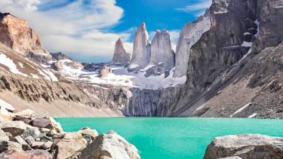 Embark on trekking adventure deep within the heart of Chilean Patagonia. Torres del Paine National Park invites you to witness the iconic granite towers rising sharply from the earth, complemented by the dazzling turquoise of its glacial lakes. Keep your eyes peeled for the region’s distinctive wildlife – majestic condors circling overhead and guanacos grazing in the valleys.