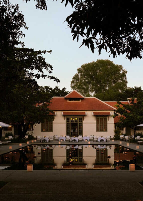 Only a ten-minute drive from the centre of Chiang Mai, in the lovely historic neighbourhood of Wat Gate, 137 Pillars is a wholly unique hotel housed in a handful of 19th-century buildings. The combination of polished teak, wooden lattice details and eclectic vintage decor makes it feel like you’ve stepped inside a treasure chest. This sensation is heightened by whimsical touches like the enormous wall of ivy beside the swimming pool and vivid pops of colour throughout.