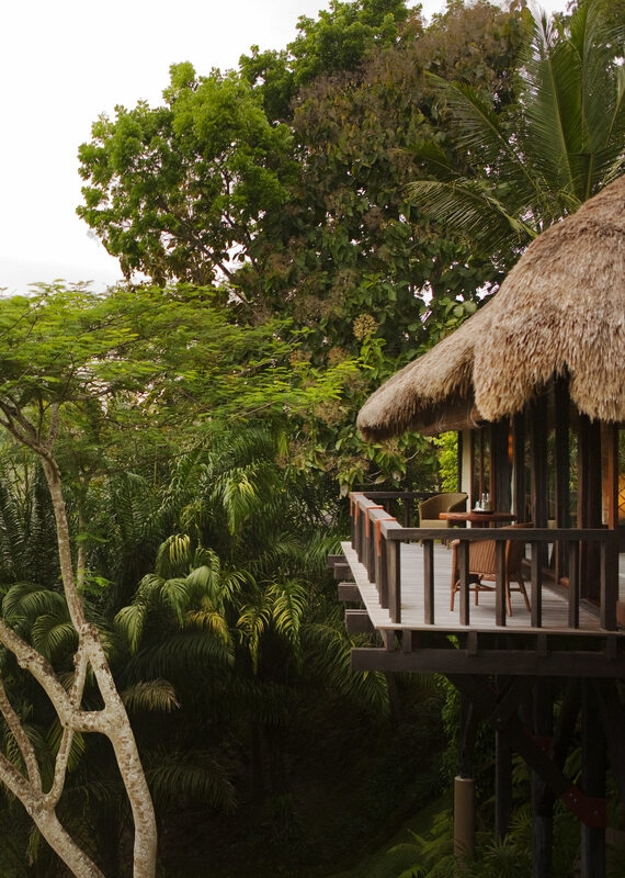 Most of Nirjhara’s villas are hidden among the twisting trunks and leaves of the jungle, but the Canopy Suite stands out; this elevated structure is designed to provide the best possible views. The resort also boasts a saltwater pool, cinema, library and open–air yoga pavilion.