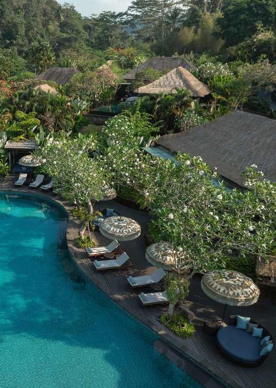 Choose from comfortable suites and secluded pool villas, which merge Balinese design with top–of–the–line amenities. Mandapa’s location is especially ideal if you’re hoping to explore the area’s many cultural attractions, such as Saraswati Temple or go hiking, biking or rafting through the wilderness.