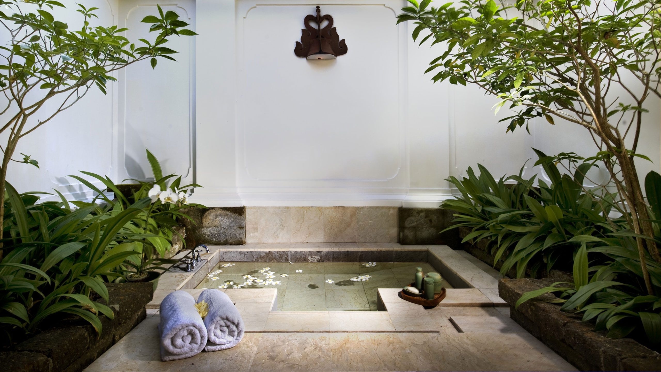 The resort is built with your privacy in mind with just thirty suites and villas available, each walled and freestanding with classic Balinese thatched roofs. All enjoy a garden courtyard, living area and wall-sized sliding doors, making them especially spacious. One of our favourite features is the large outdoor, sunken marble tubs, allowing you to bathe underneath the open sky in peace and private.
