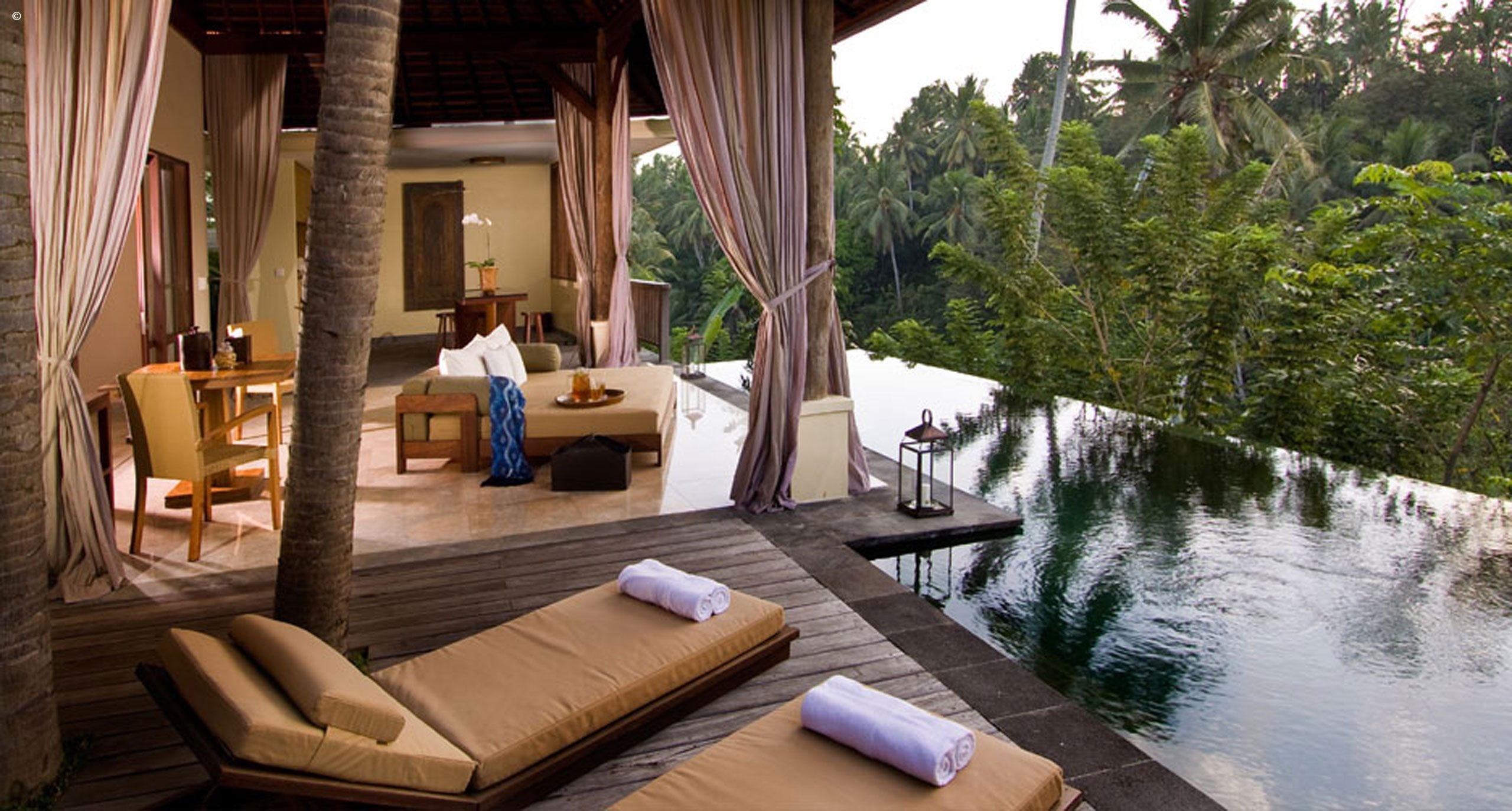 Nestled along the Campuhan river valley, overlooking sloping rice fields and coconuts grove is Komaneka at Bisma. This luxurious resort offers a myriad of contemporary amenities to create a stylish and lavish home environment.