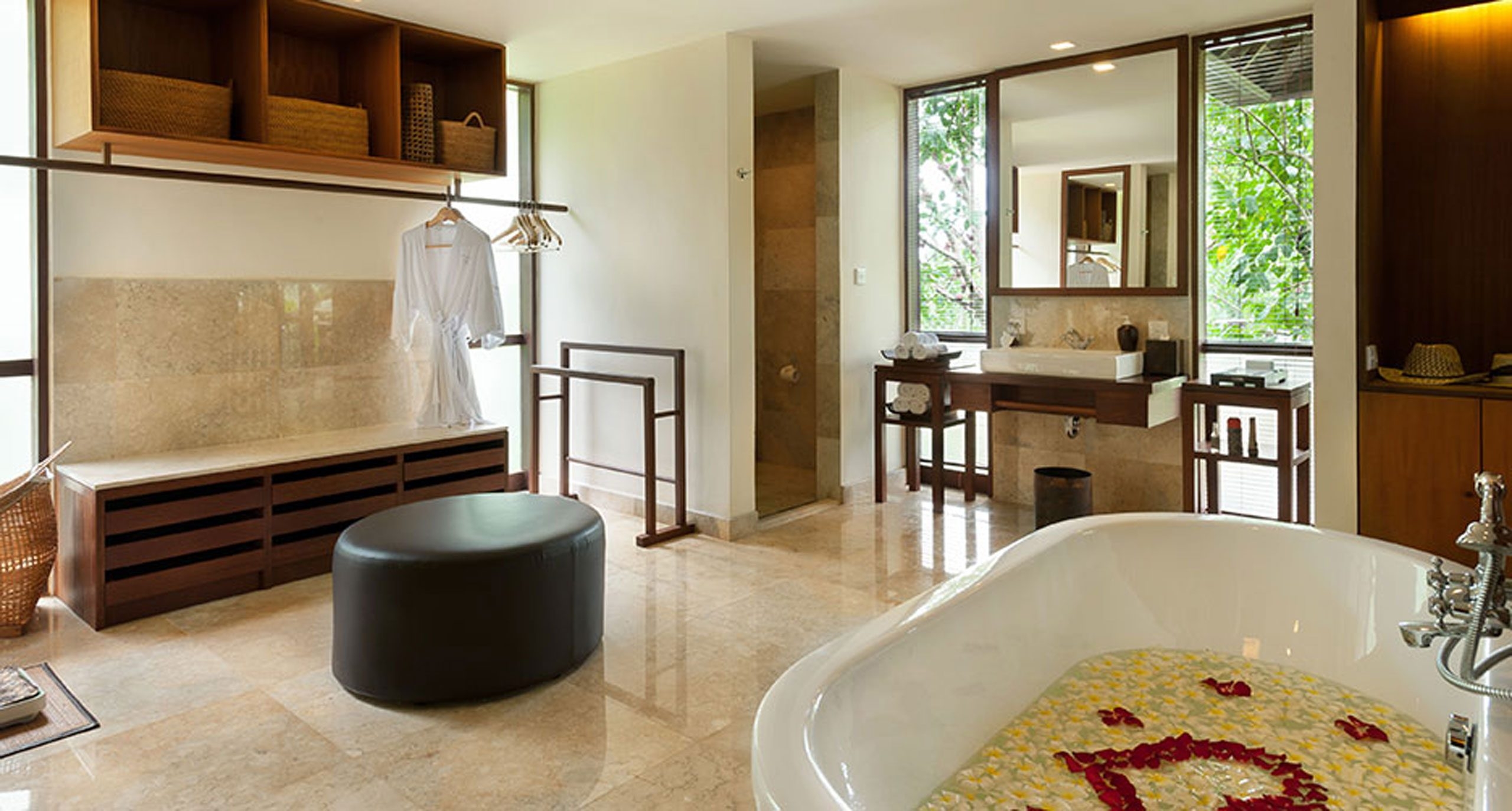 Elegant villas come immaculately furnished with their own pools, verandahs, large day beds and scenic views. Dining is taken care of with an Indonesian fine dining restaurant plus further bars and lounges, while the Balinese kitchen offers cooking lessons so you can re-create your favourite dishes at home.