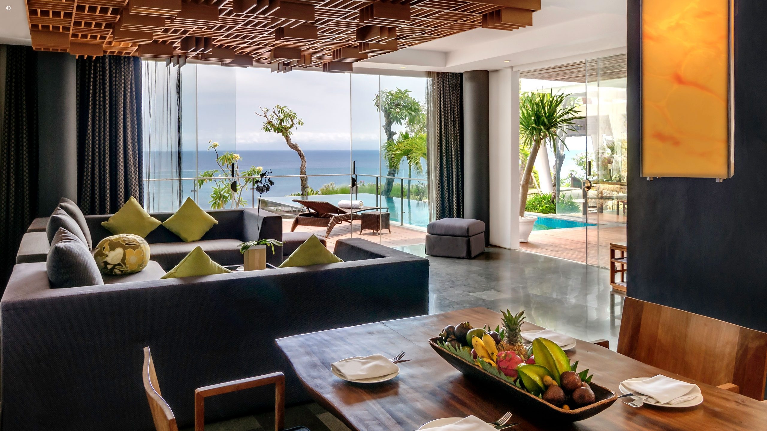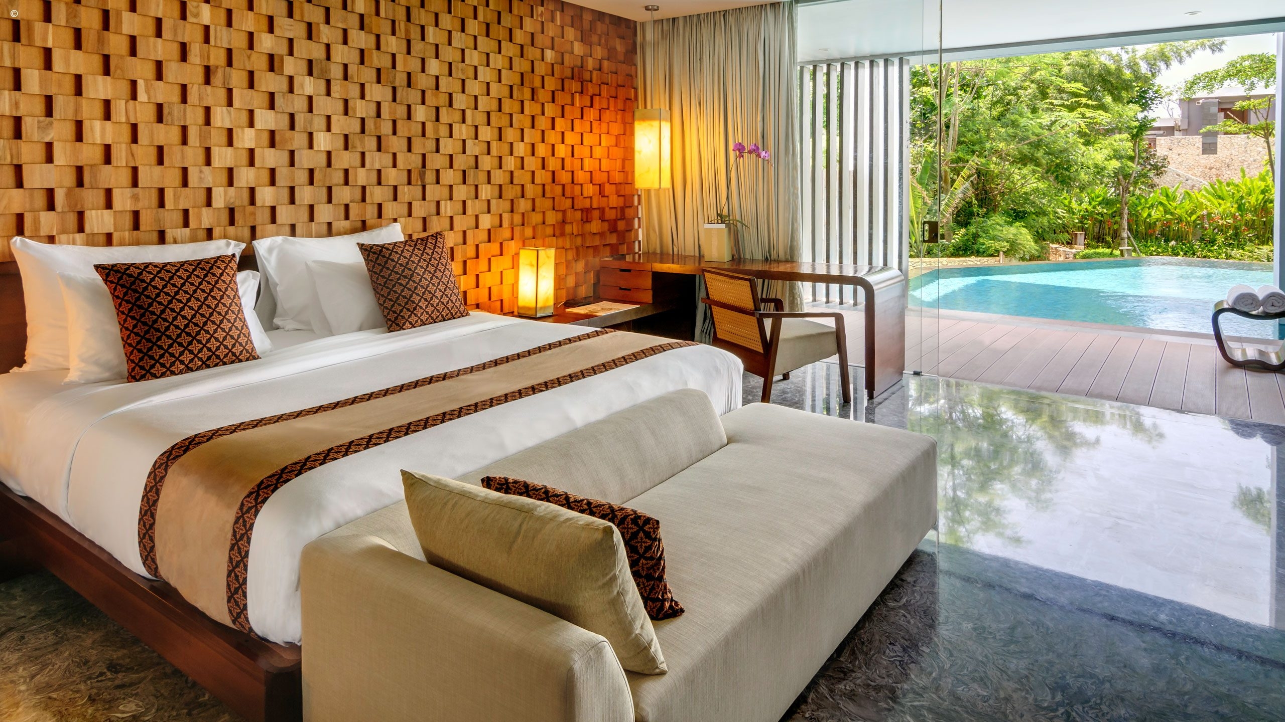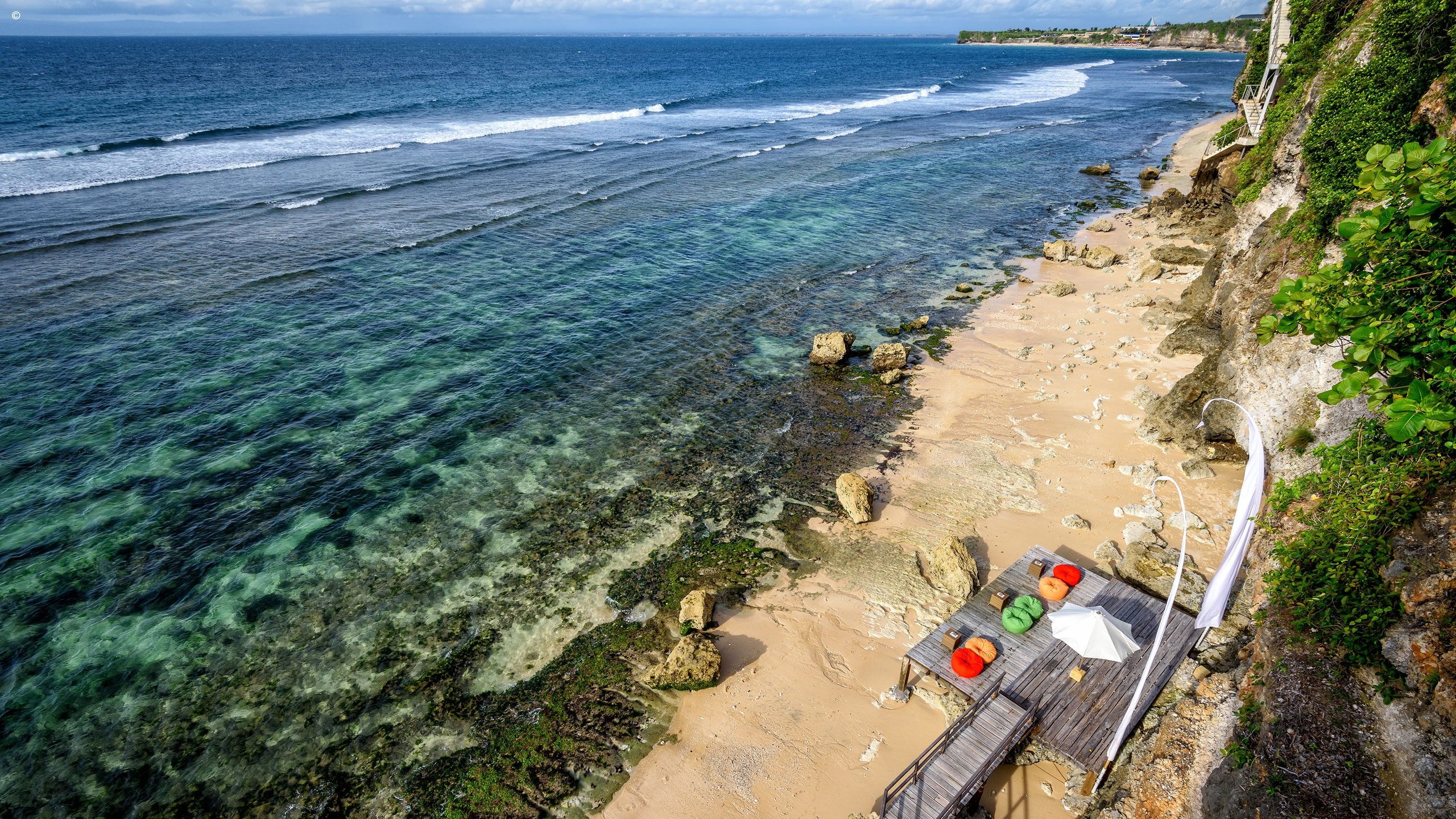 Nestled into a cliff’s edge, suites meander down to a hushed-up beach boasting first-class surfing here at Anantara Uluwatu.