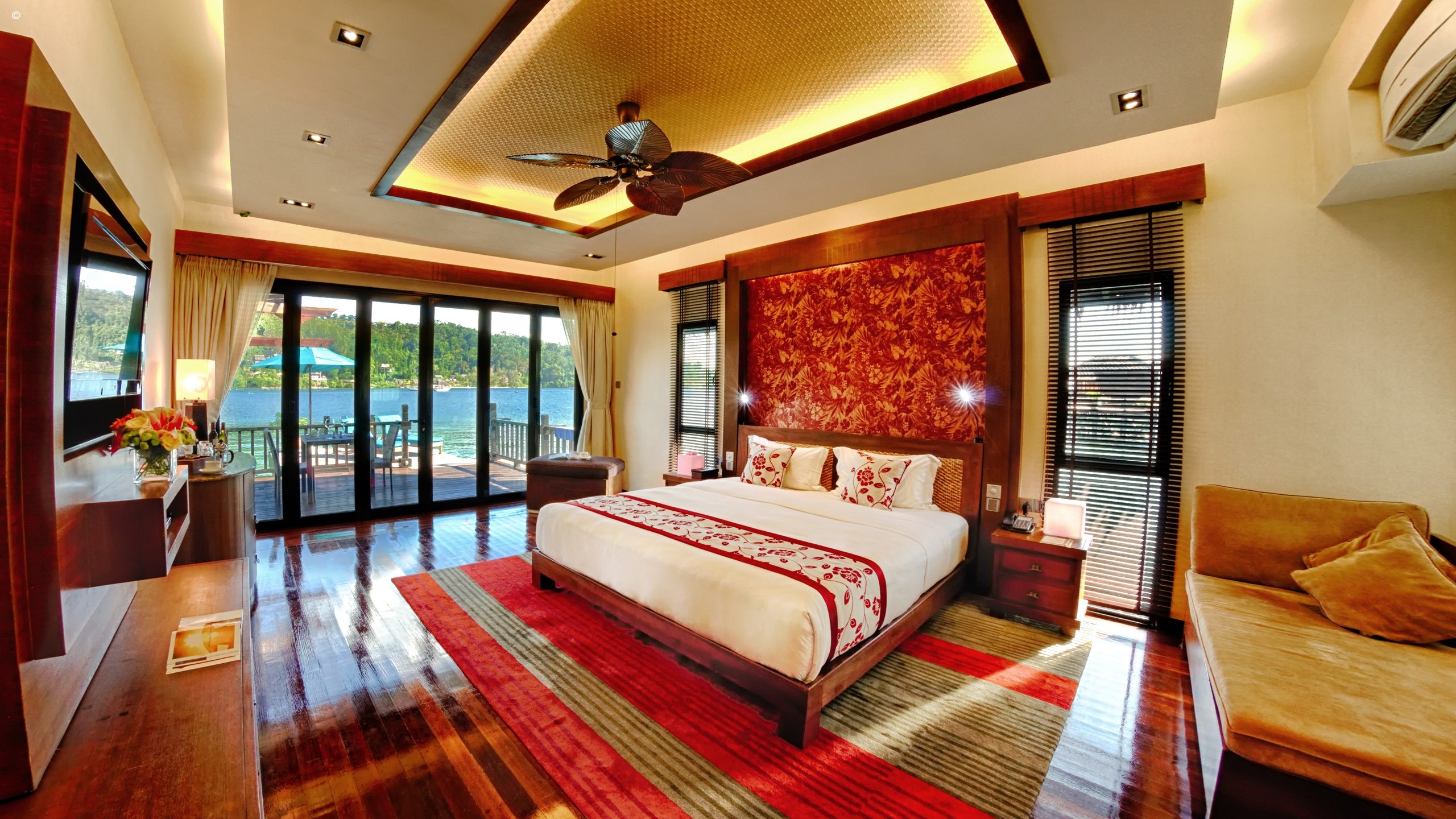 The environmentally conscious resort boasts 52 sumptuous villas which not only sit out on the water but command views of the impressive Mount Kinabalu. The villas combines neat local style with an array of modern comforts.