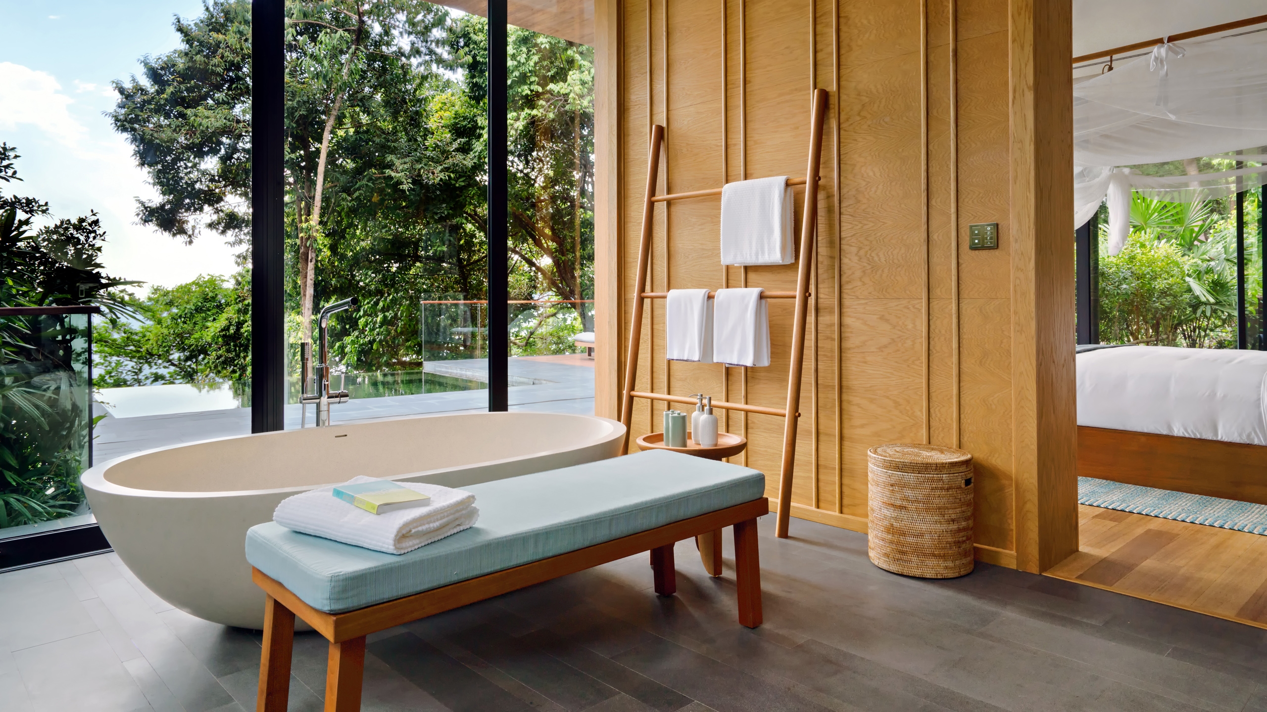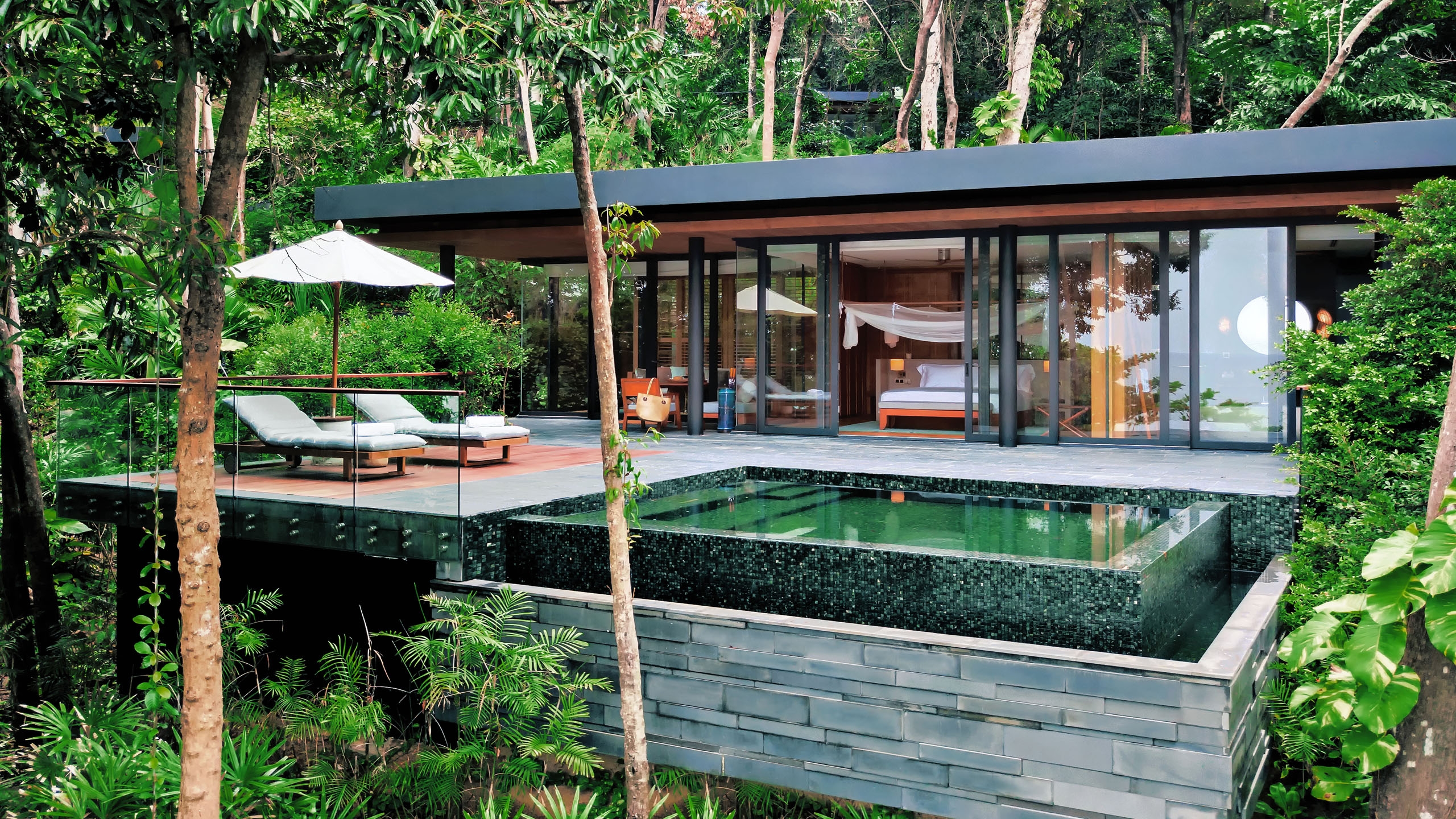 Guests will arrive at the mainland reception before a short water transfer to the island. There’re 40 private pool villas, which blend seamlessly into the surroundings without compromising on luxury. Spacious interiors, beautiful en-suite bathrooms and living rooms with a day bed offer ultimate comfort, and a soft, neutral colour scheme works with the natural environment. Each villa opens out onto a decking area with a private plunge pool.