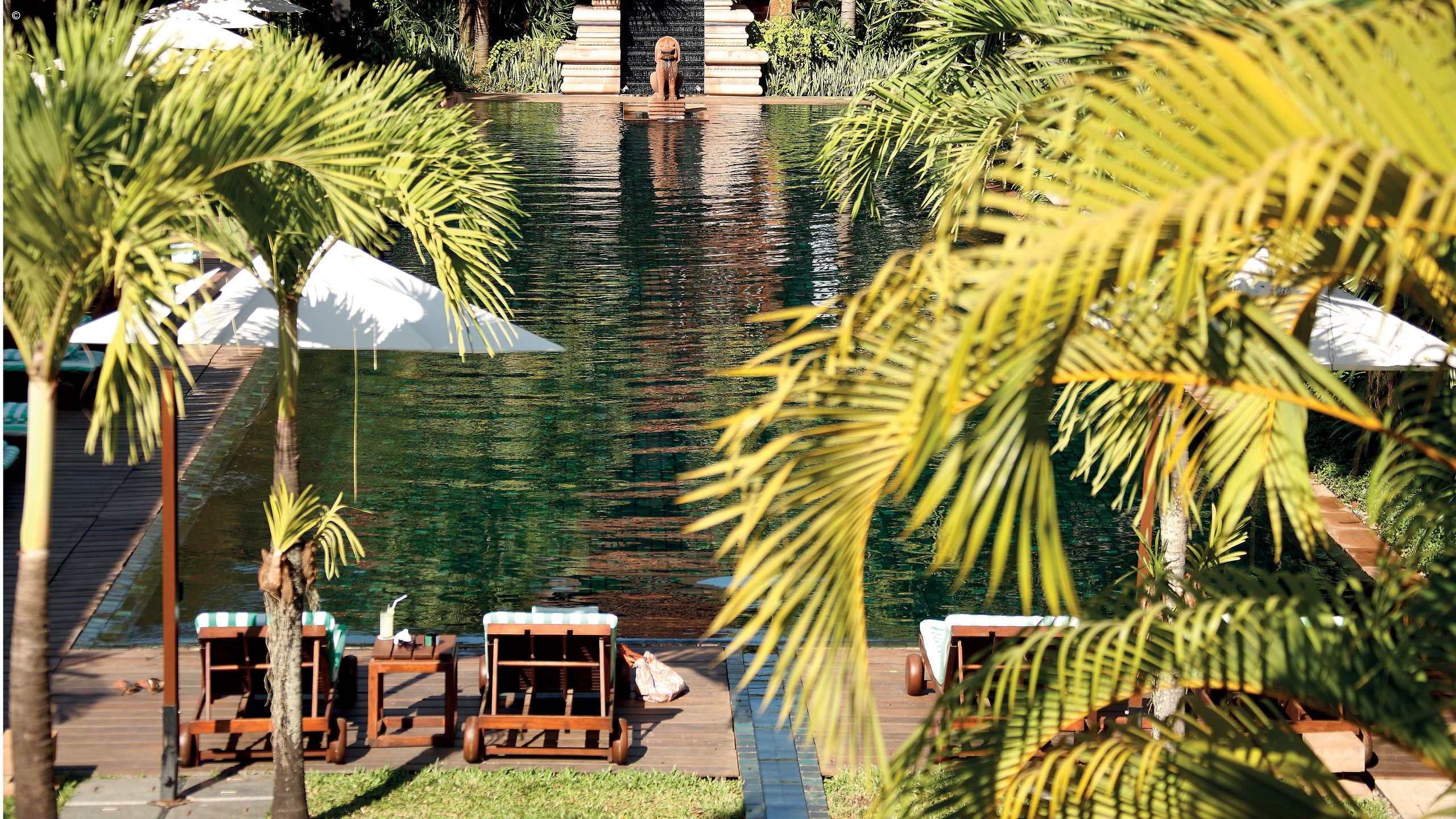 This hotel’s high walls hide vibrant, fragrant gardens filled with bougainvillea, frangipani and soaring palms that are La Residence D’Angkor’s enchanting setting.