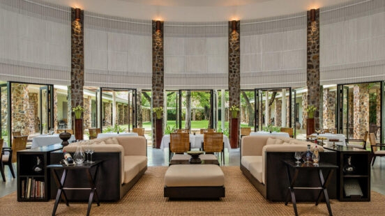 Describing itself as a ‘high-end curated mansion’, Rosewood Phnom Penh combines the pinnacle of luxury with panoramic views of Phnom Penh and the Mekong River. Its top-notch dining spaces include a patisserie, a whisky library, various international eateries and the stunning Sora sky bar, set on a cantilevered terrace 37 storeys above the city.