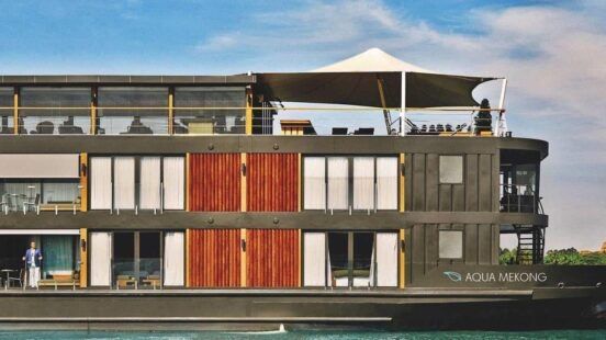 Aqua Mekong is far from your average hotel. This ultra-luxe cruise ship travels along the Mekong River between Vietnam and Cambodia, promising an unforgettable slow travel experience. Its 20 suites boast floor-to-ceiling windows; there’s an on-board outdoor plunge pool, spa and library; and private launch boats are available for daily excursions.