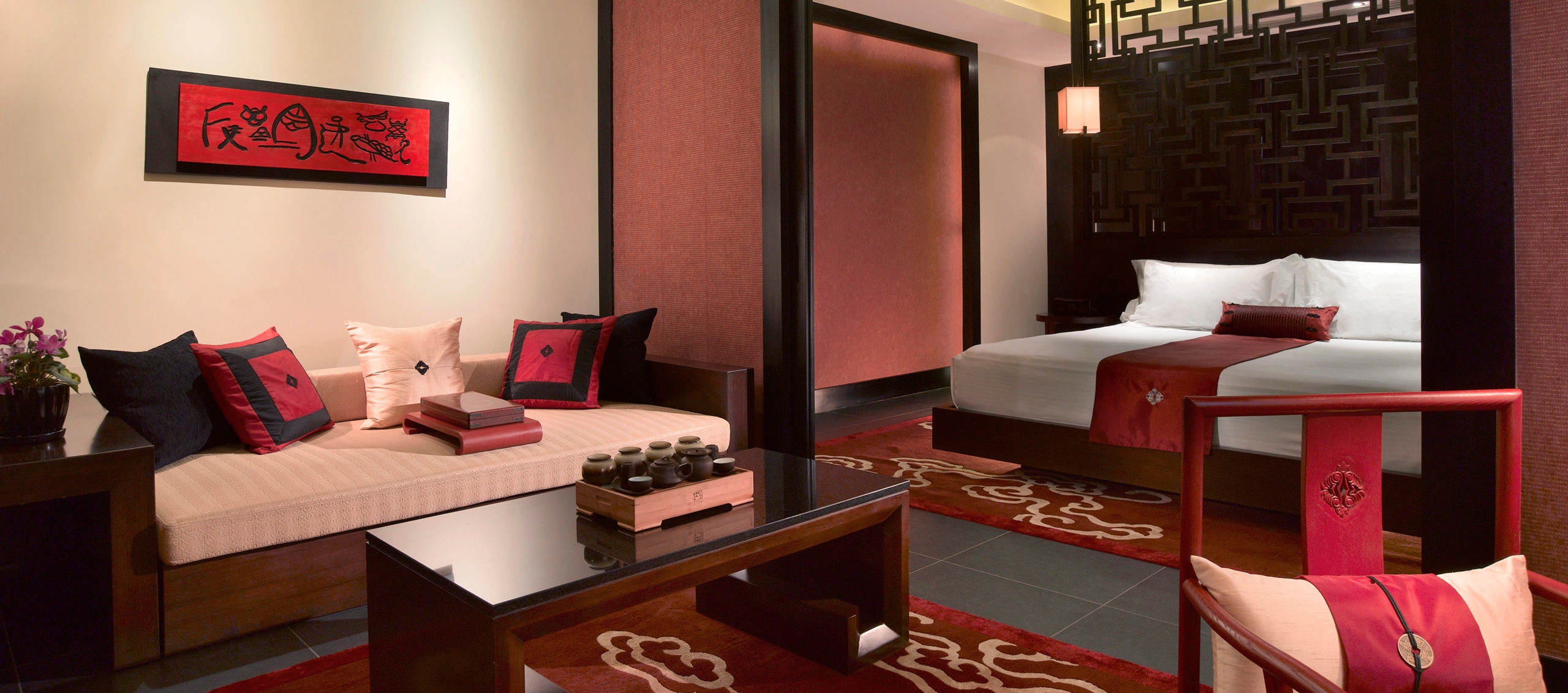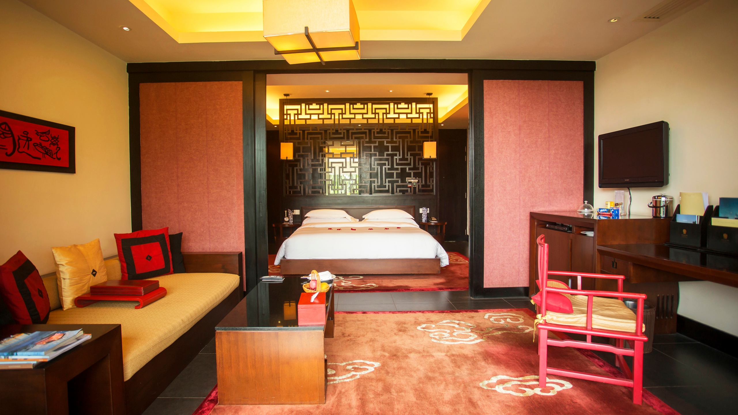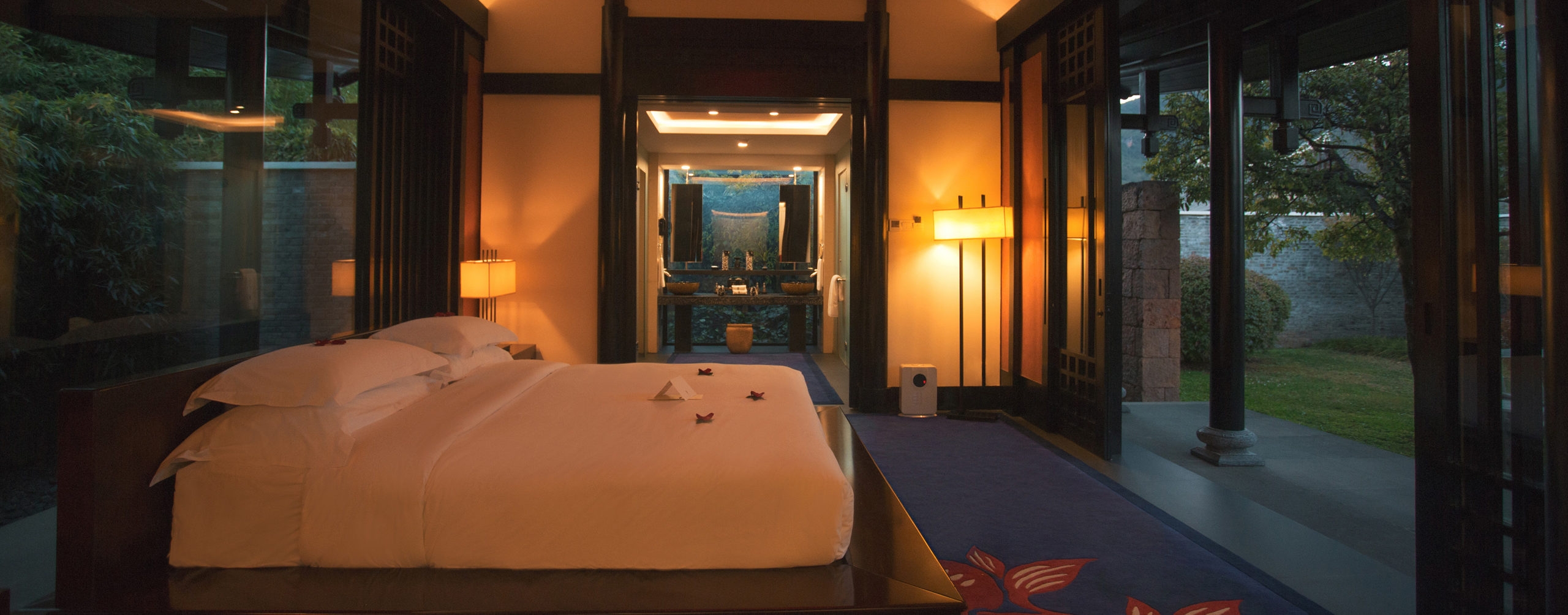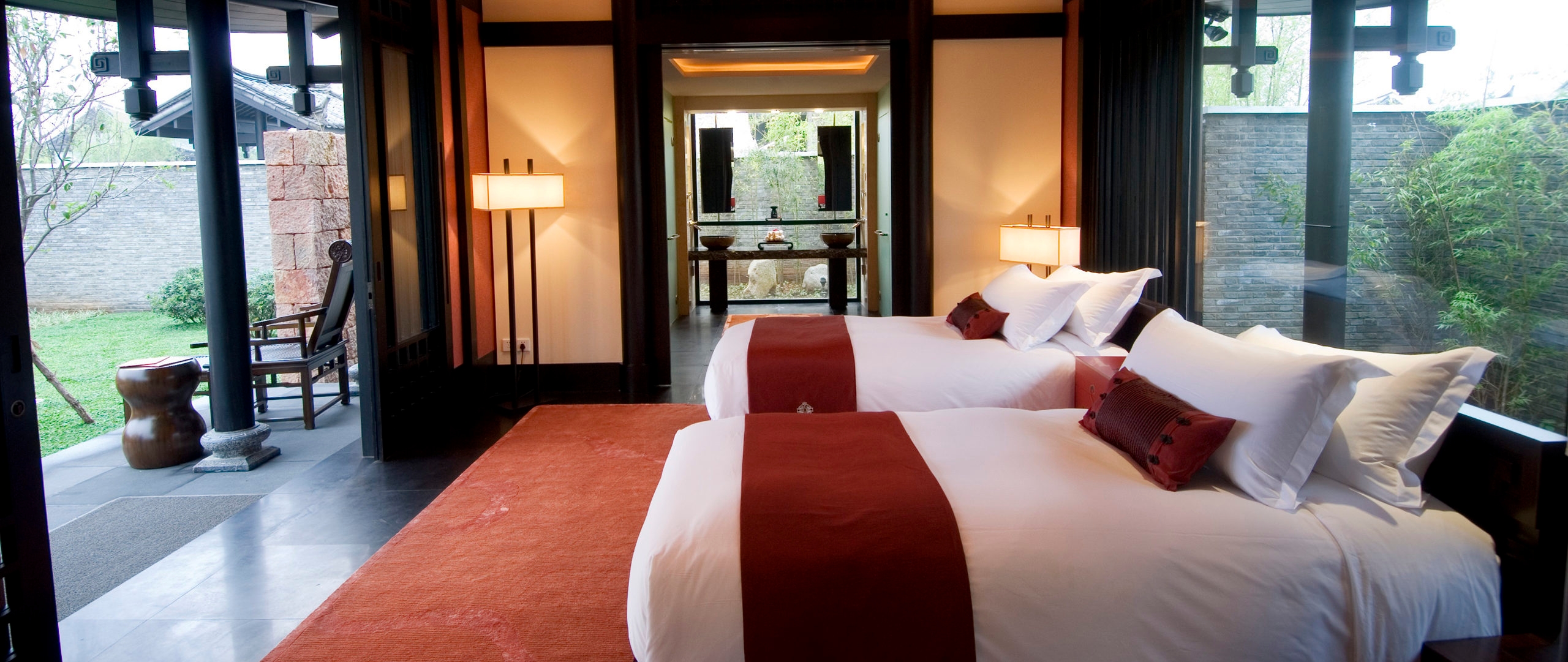 Rooms here are palatial in their own right, borrowing from elements of Nashi architecture such as perfect symmetry, elegant pillars and subtly carved poles. Here you can absorb panoramic views of the legendary Jade Dragon Snow Mountains from your plush king-sized bed, as well as bask in the beauty of your carefully tended private gardens, relax in the private outdoor heated pools and individually tailor your comfort with a thoughtful pillow menu. Rooms are decorated with dark woods and red hues, known in China as the traditional symbolic colour of happiness, and a stay here is sure to instil such a thing.