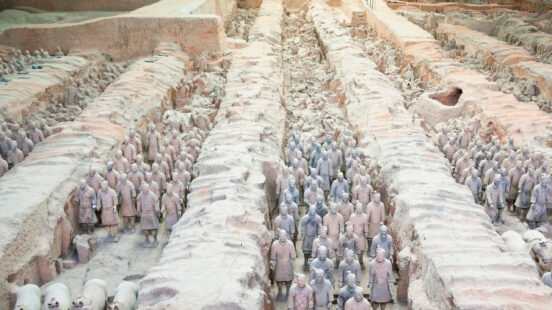 One of the world’s most famous archaeological sites, China’s army of terracotta warriors is found just outside the city of Xi’An, which lies at the eastern end of Asia’s Silk Road. This incredible collection of ceramic warriors has silently stood guard over the soul of Emperor Ch’in – China’s first unifier – for more than two million years. Many Chinese emperors believed their rule would continue after their death, and many archaeologists believe this is why ruler Qin Shi Huang built so many soldiers to guard his soul.