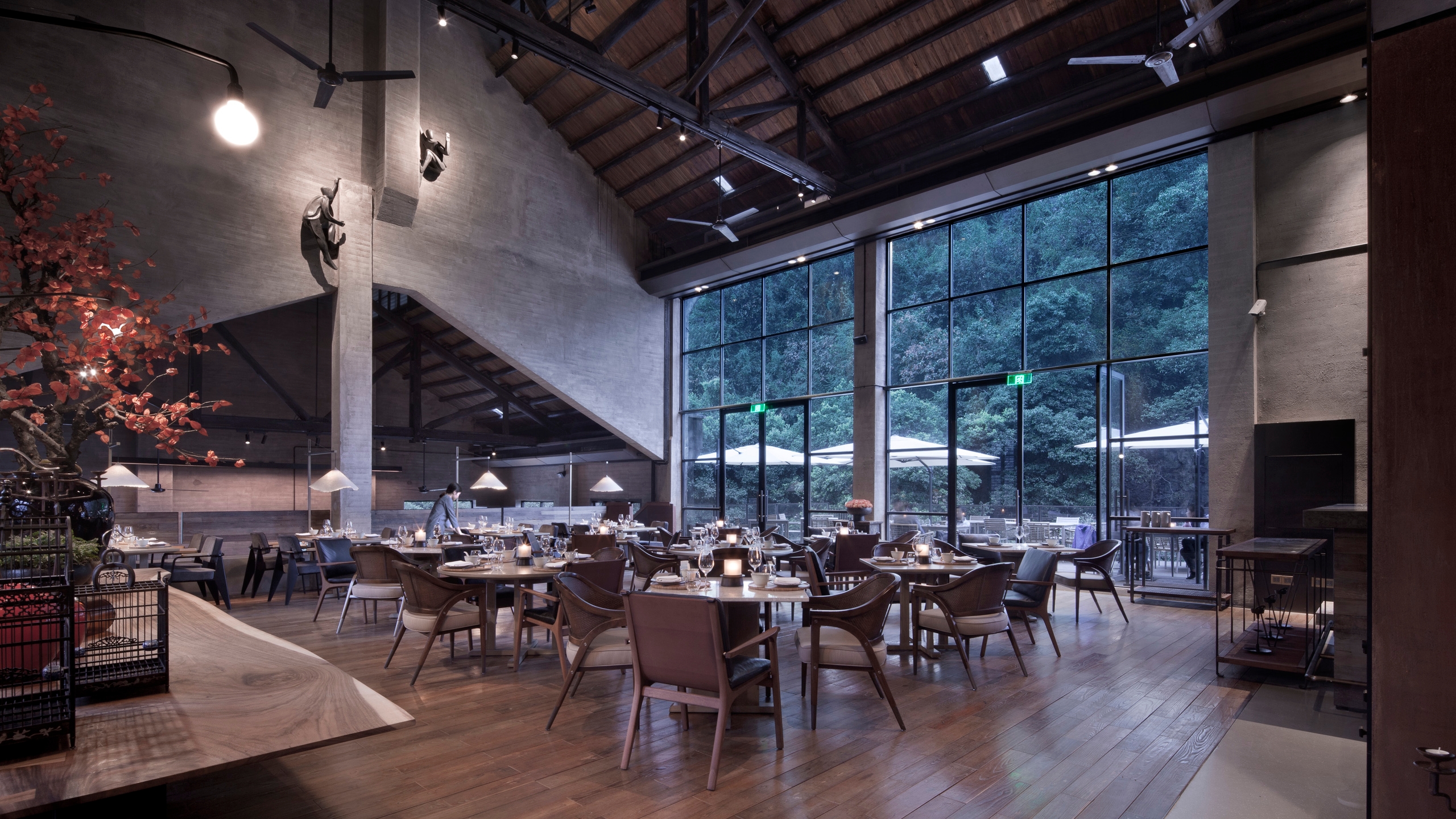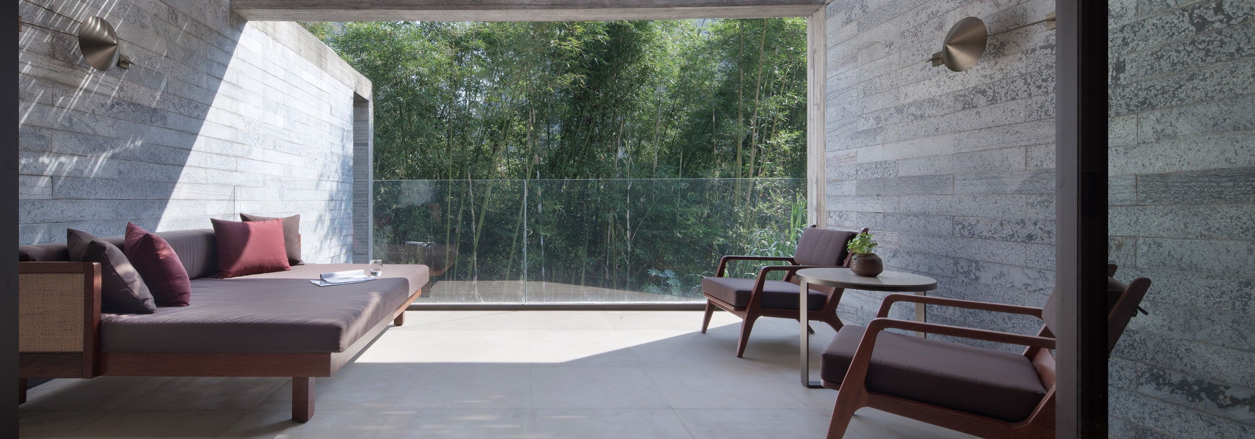 The hotel is an architectural masterpiece; a modern retro resort that uses a stylish simplicity to instil a sense of tranquillity indoors, perfectly matching the picturesque setting of greenery and dramatic karst mountains that surround you.
