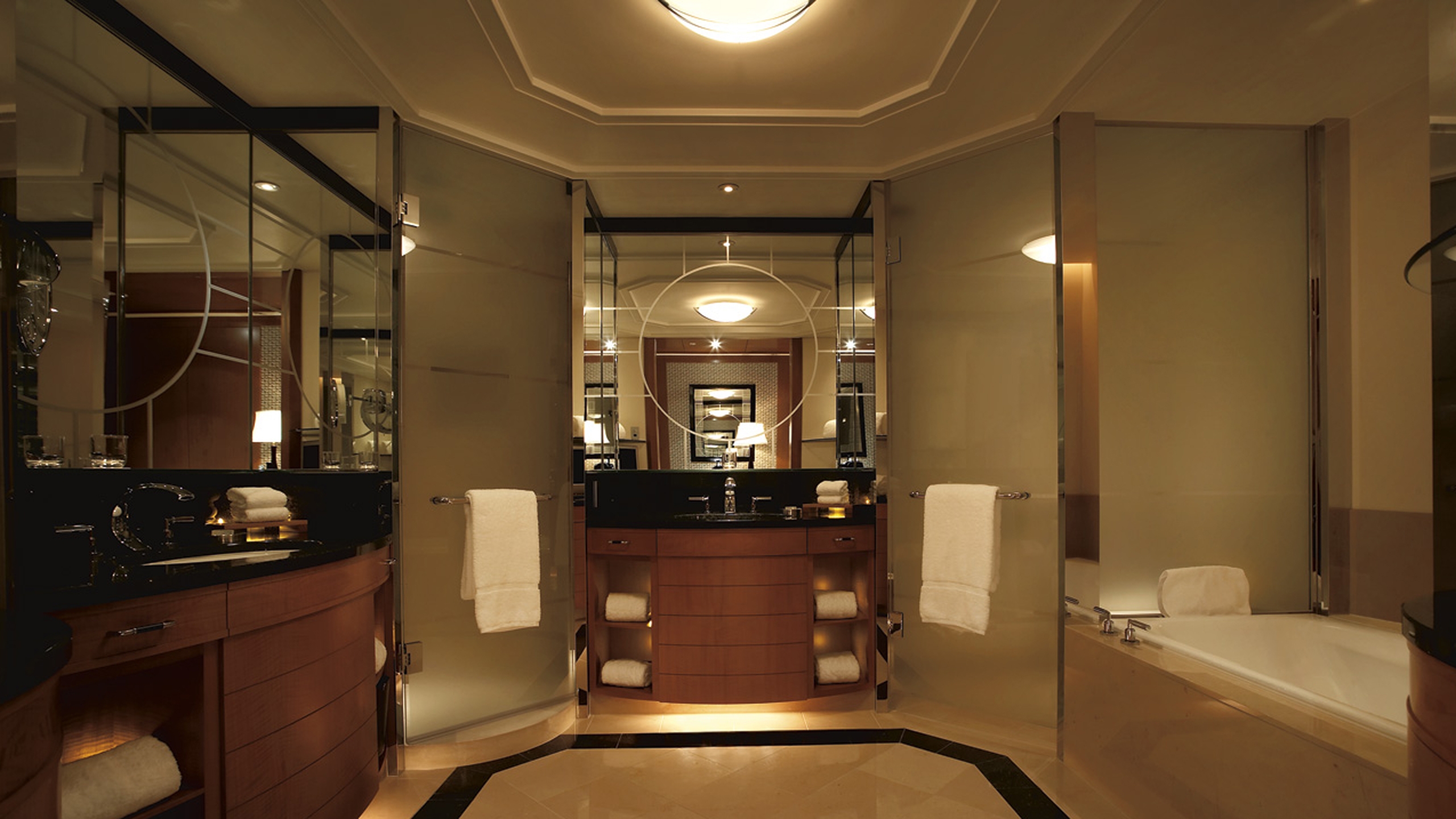 One flight higher, on the 46th floor, is the Ritz Carlton’s spa, with indoor lap pool, dry sauna, steam sauna, treatment rooms and fitness studio.