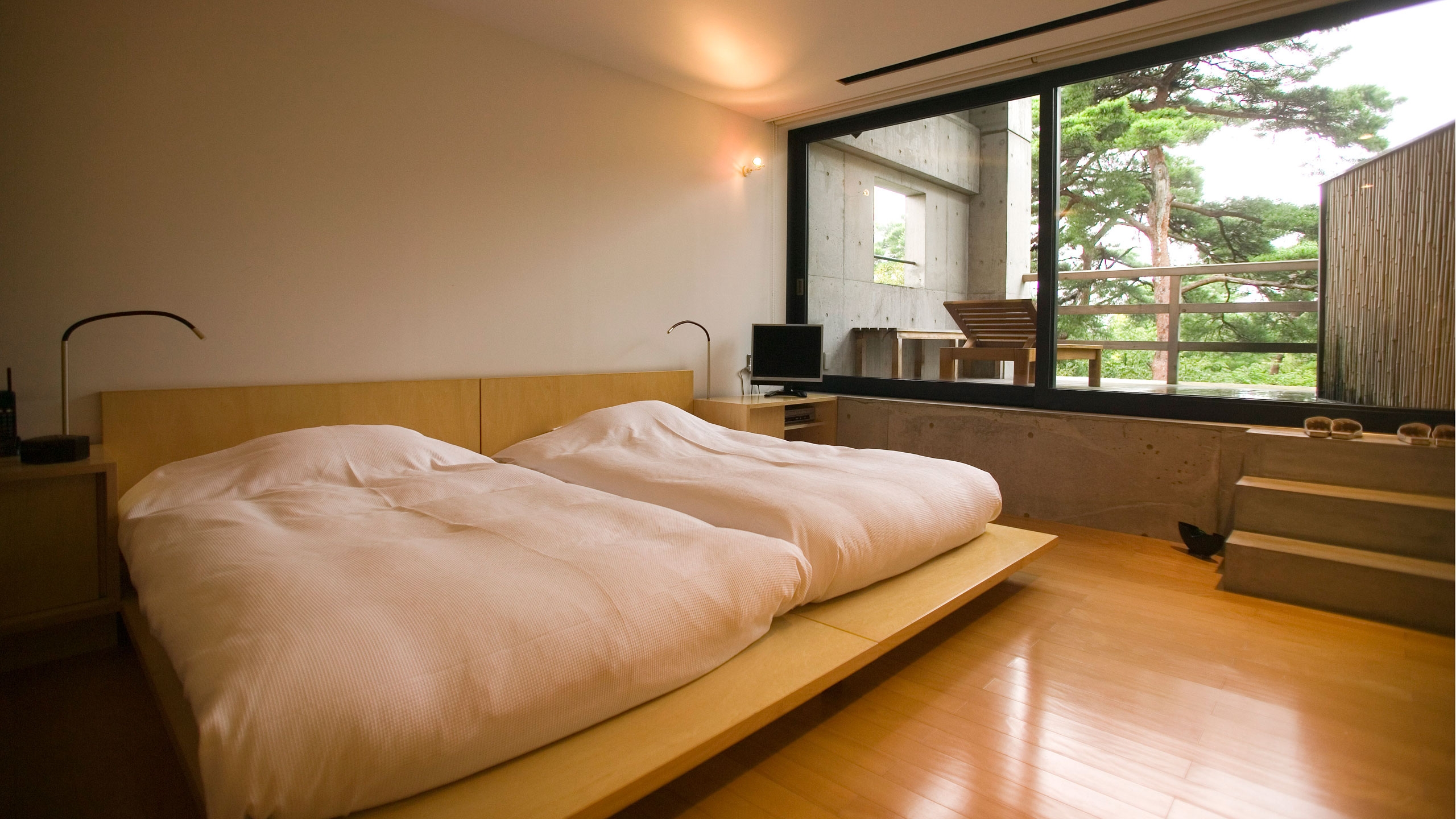 Combining Japanese and western decor, the 17 guest rooms and suites are all decorated uniquely. Comprising of solely Japanese-style rooms, Western-style rooms and some of which are a hybrid between the two, this ryokan is like no other. The hotel’s architecture elegantly emphasises contrast between light, shade and neutral colours creating a peaceful atmosphere for total relaxation.