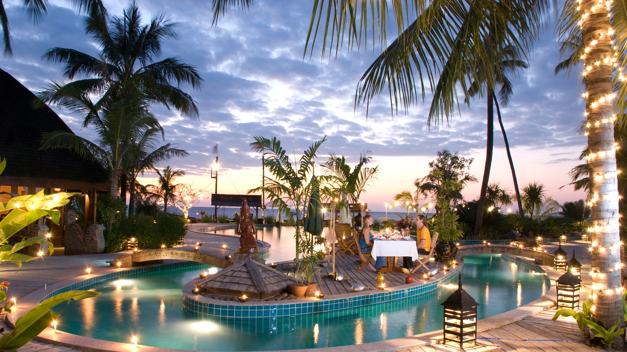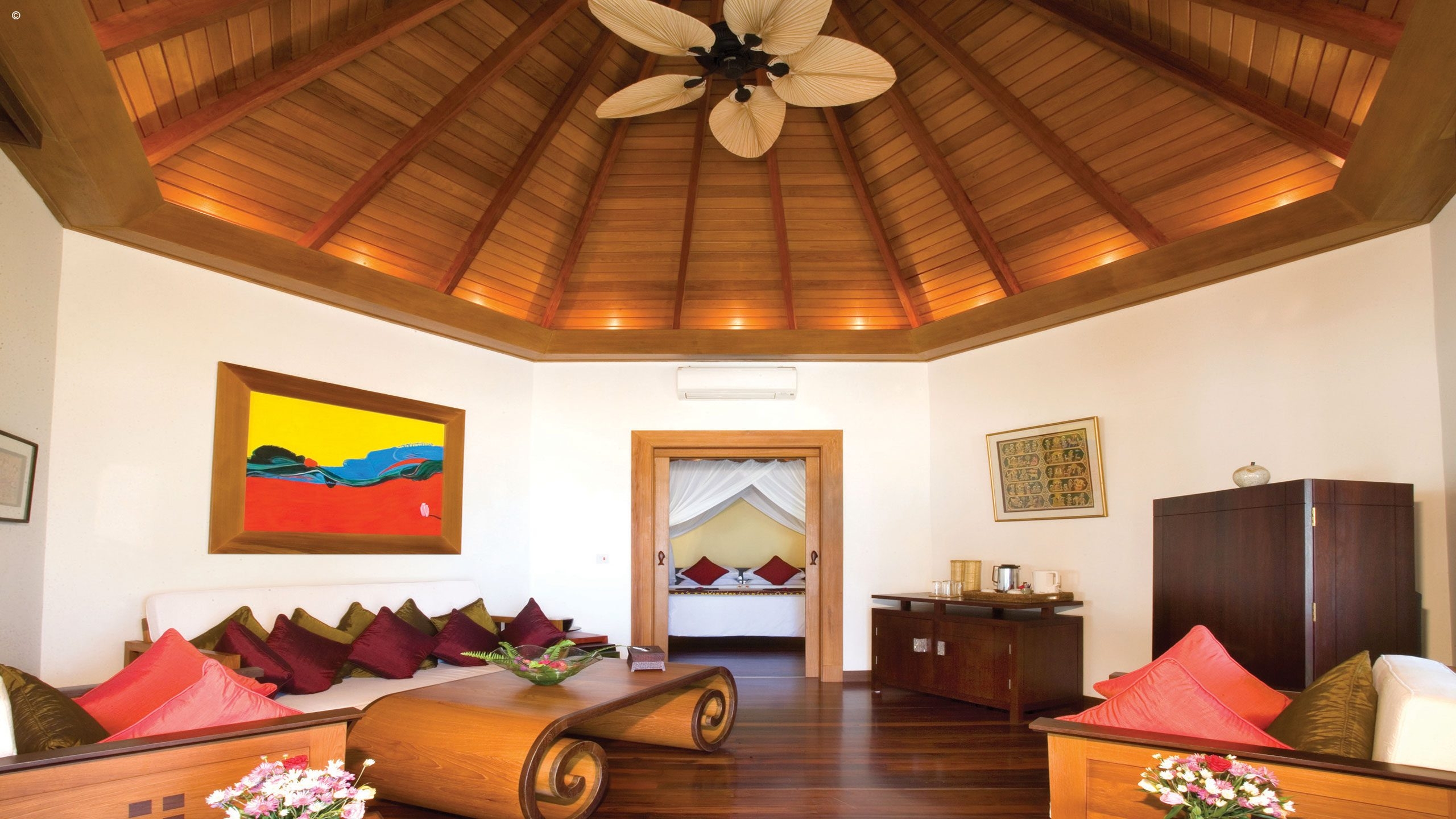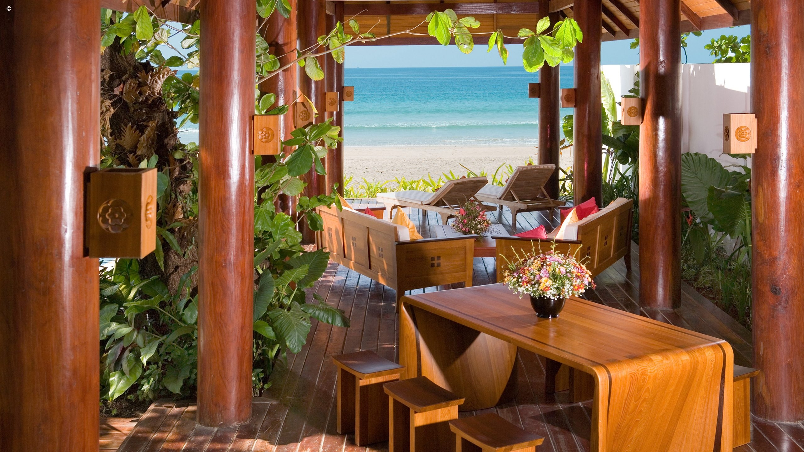 The 42 teak cottages each have private balconies that face either the lush gardens or the glittering sea. There are three categories: Executive, Ocean View and Garden View. All have outdoor jacuzzis, but the Executive cottages go one better with their private pools.