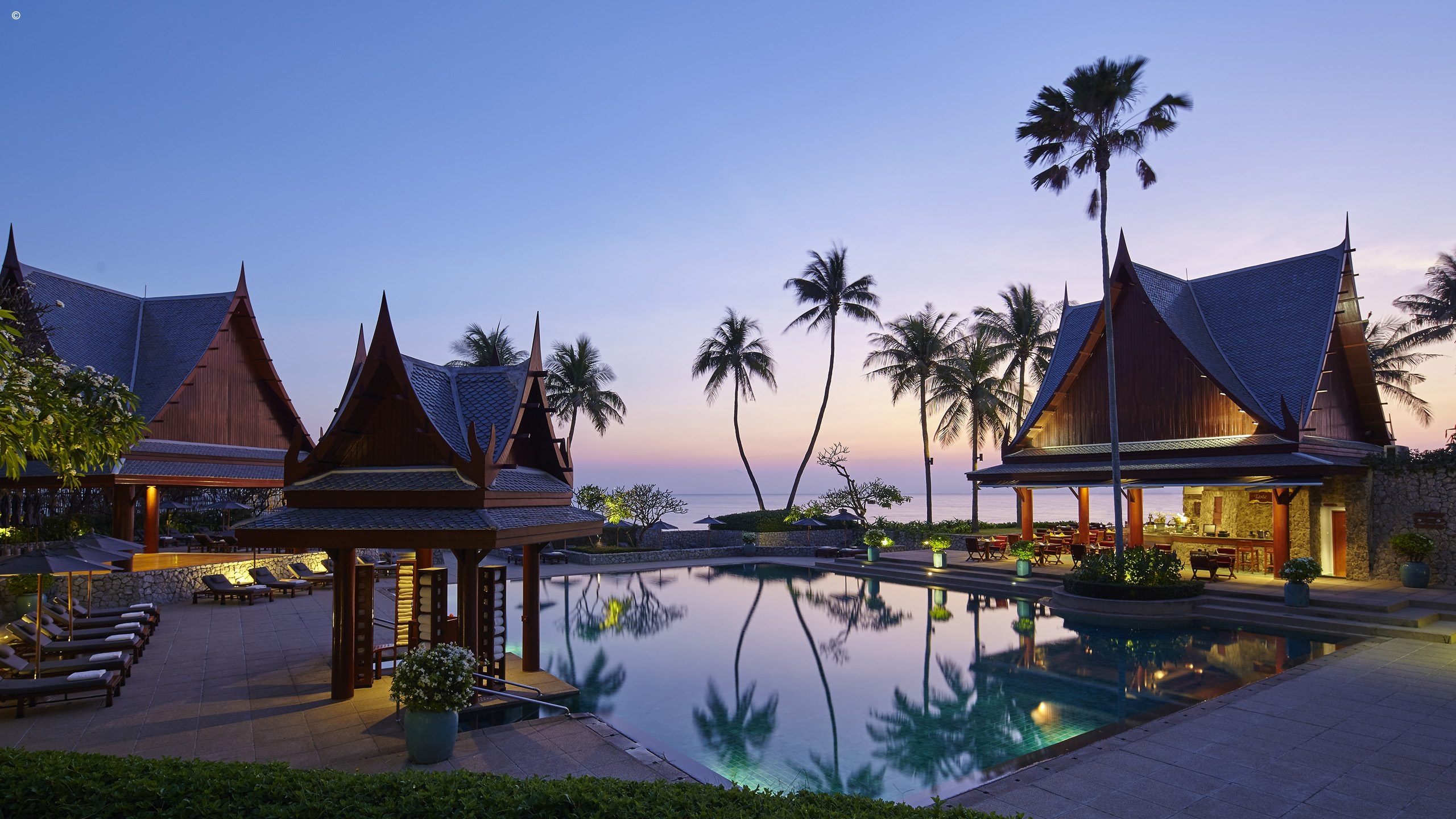 Expect lavish and modern accommodation with nods to the traditional and elaborate Siamese style. Choose from seven categories, all come with an abundance of comfort, stylish marble bathrooms and personal touches from a very attentive team of staff.