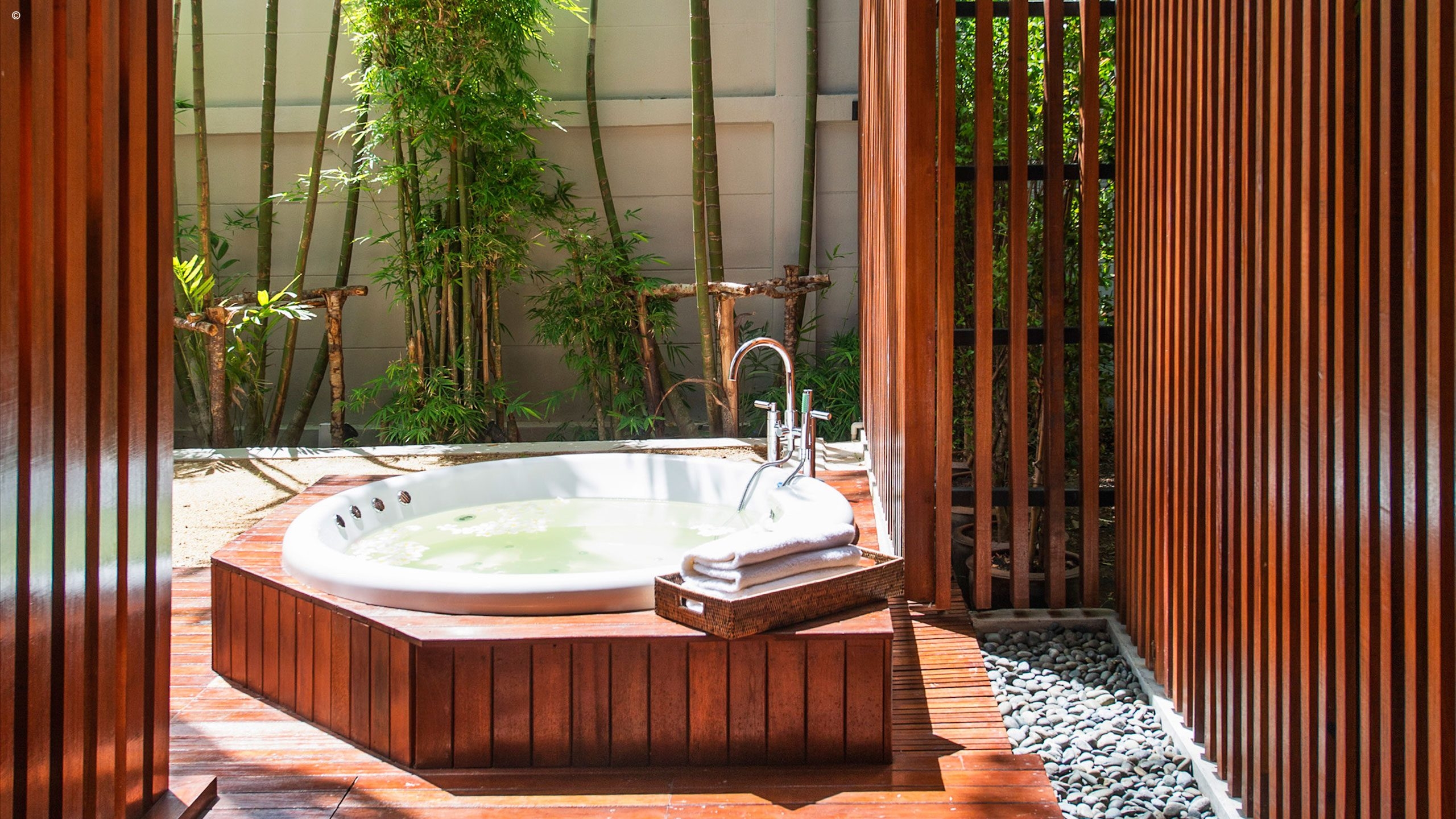 Spa with an outdoor Jacuzzi, hydrobath, sauna, shock shower and a salt room