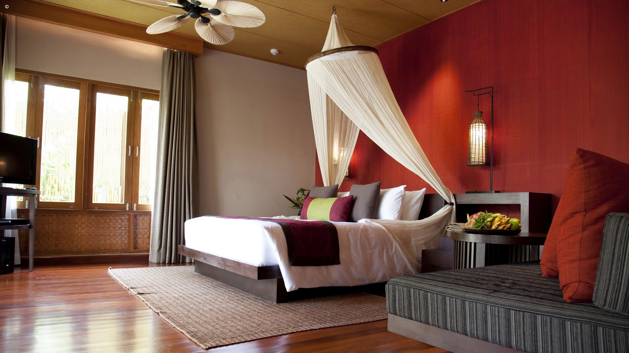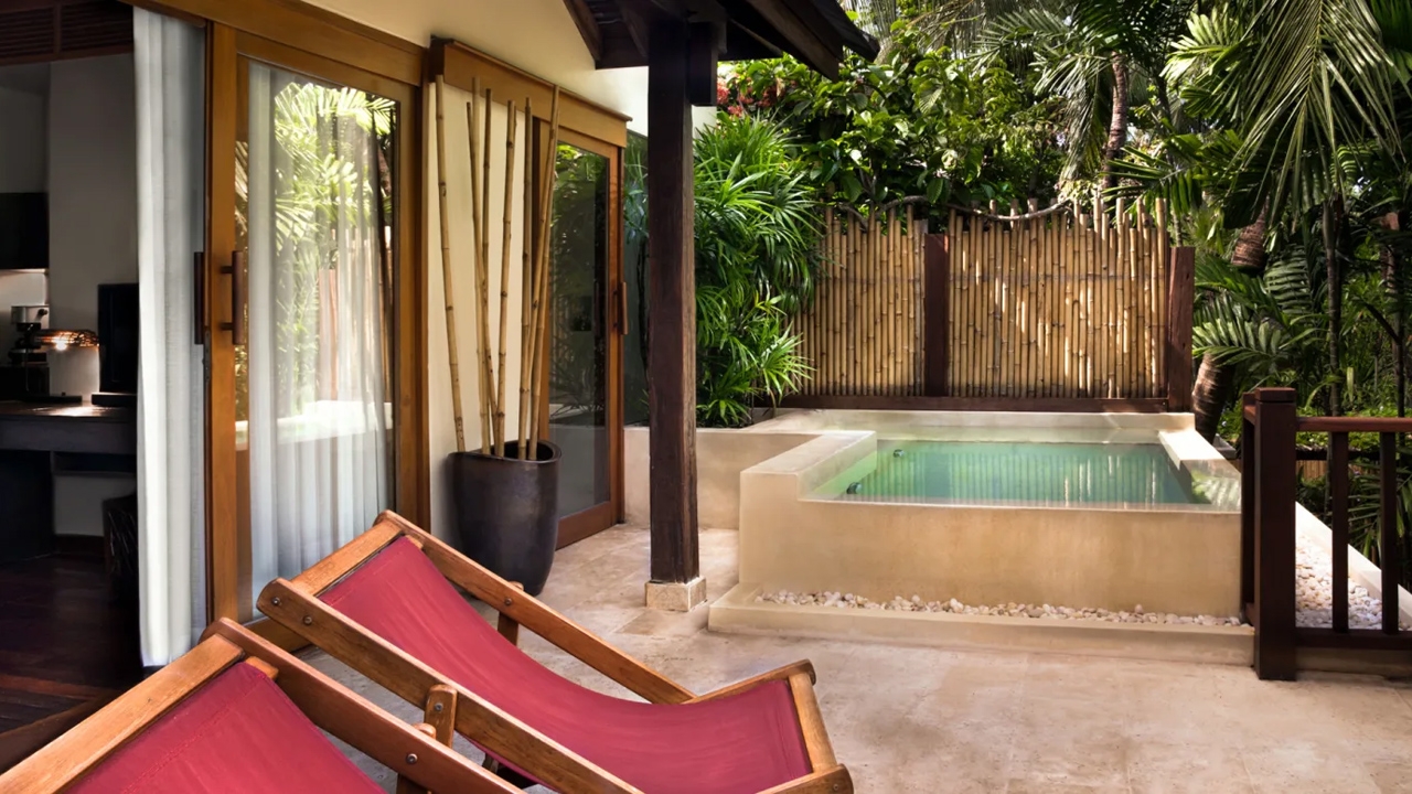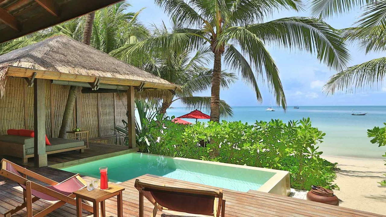 This highly romantic resort, set between idyllic mountains and crystal-clear sea, boasts modern architecture infused with the tones and textures of traditional Thai design. Suites and villas contain luxurious features such as expansive terraces, private gardens, infinity pools and panoramic beachfront vistas, all enclosed within high wooden walls to ensure maximum privacy.