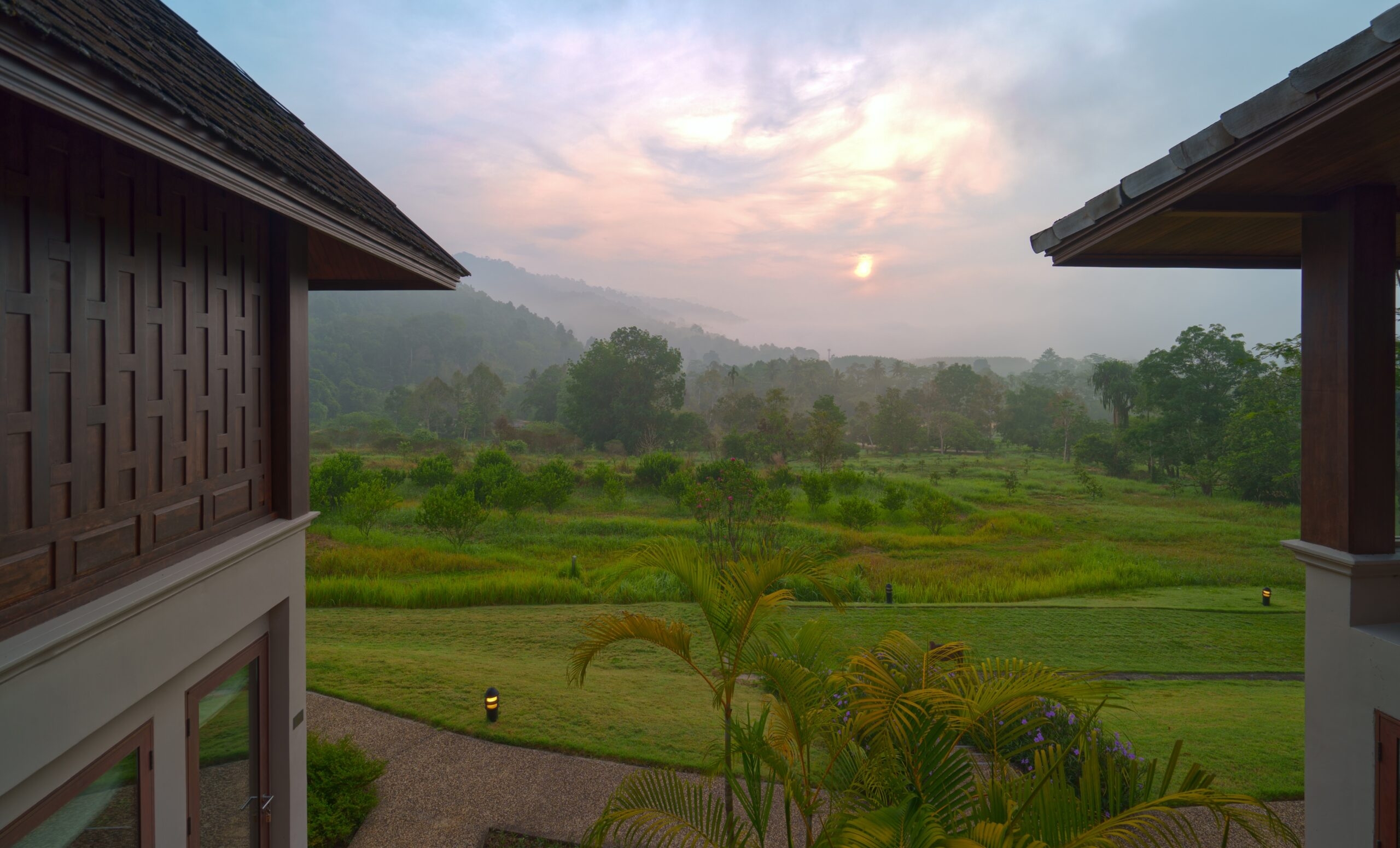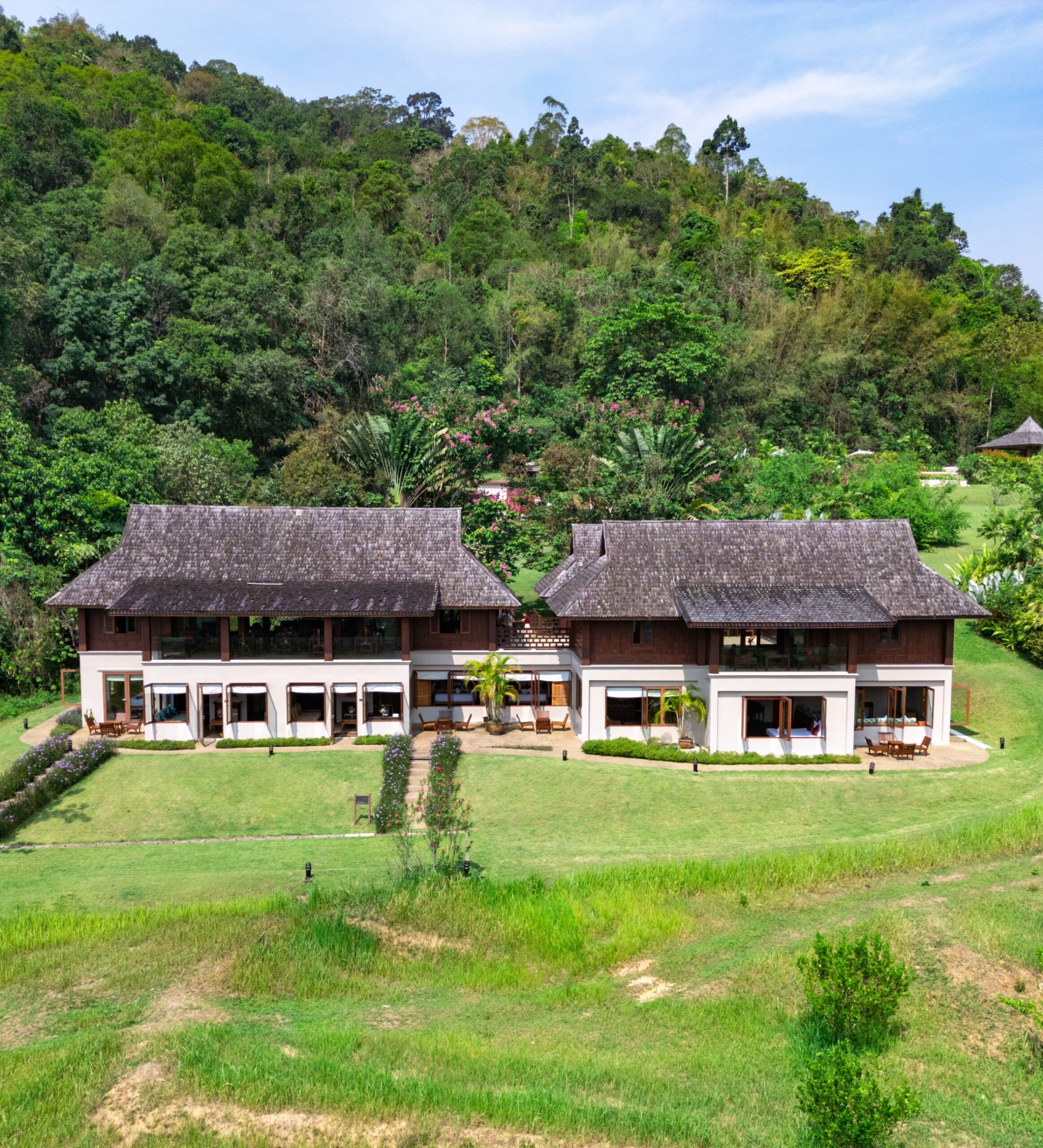 Tucked away on the fringes of Khao Sok National Park, one of Thailand’s most ancient and biodiverse rainforests, Thanyamundra Organic Resort offers an intimate sanctuary with nine guestrooms. The setting is mesmerising: a patchwork of cultivated organic farmland gently gives way to dense jungle, while mist drifts across rolling emerald hills in the early morning.