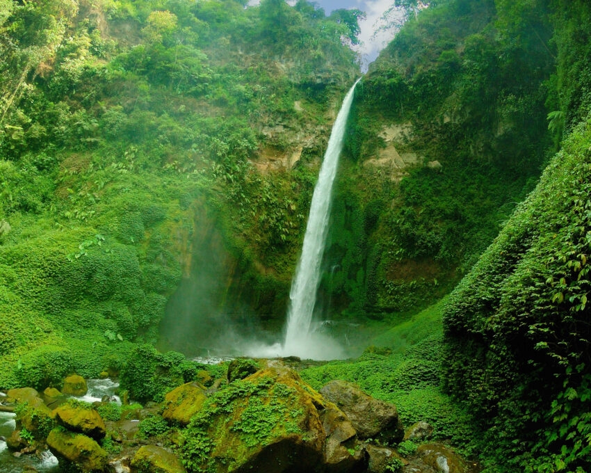 Coban Pelangi is located near the village of Gubug Kelakah. The waterfall flows 30m from the cliffs which are surrounded by lush greenery.
