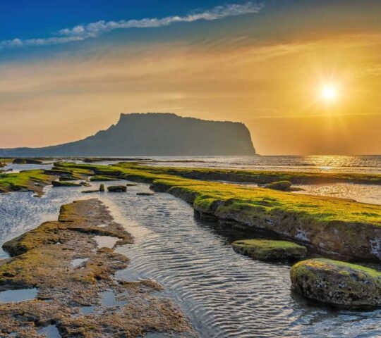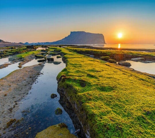 As you traverse its landscape, you’ll descend through lush forests, pass by villages crafted from dark volcanic stone and encounter the iconic dol hareubang grandfather statues hewn from basalt. Along its coastline, Jeju unveils a stunning vista of sheer cliffs, cascading waterfalls and pristine beaches, adorned with vibrant wildflowers, casting a spell of natural beauty. Nestled amidst this picturesque scenery are remarkable temples and lava tubes waiting to be explored.