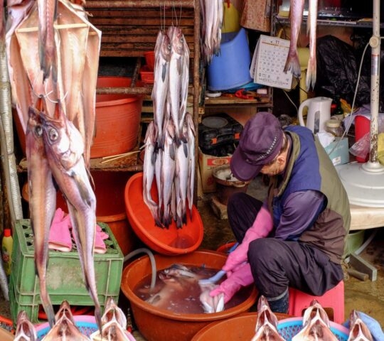 Here, you’ll encounter the iconic Jagalchi Ajumma vendors – women who dominate the market with their expertise and lively personalities. “Ajumma” signifies middle-aged or married women in Korean, adding a cultural flair to your immersive market experience.