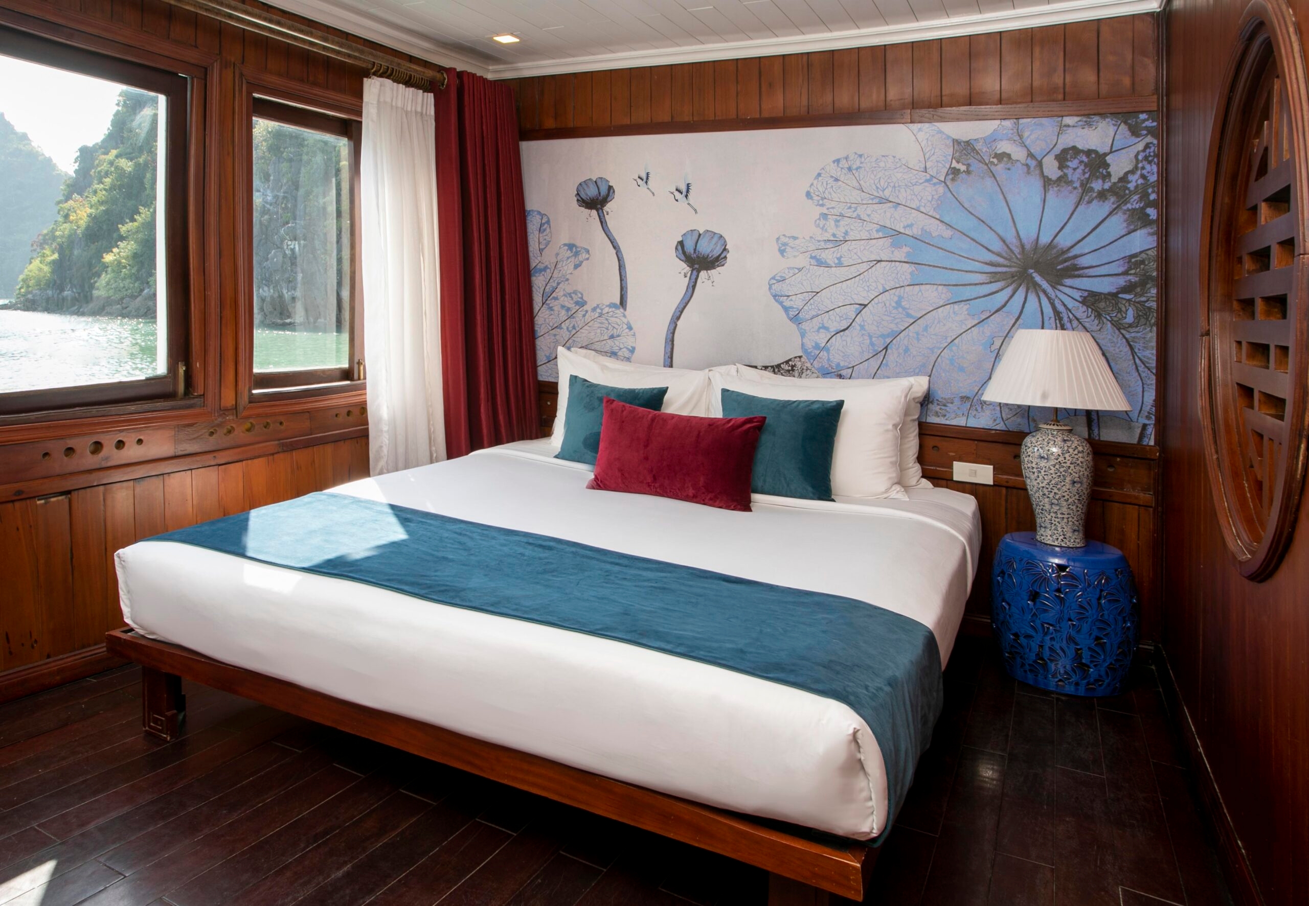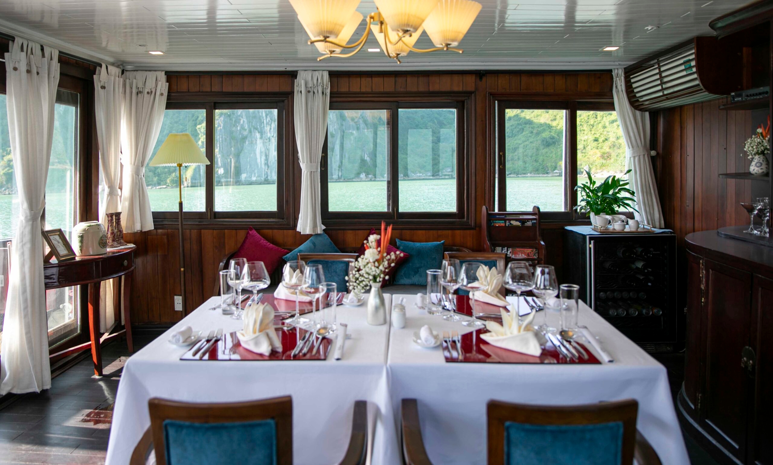 With just two cabins on board its single deck, the slim Bhaya Legend II is perfect for small parties wishing for a more personal experience of Halong Bay. Explore the limestone islets and emerald waters with a highly flexible private charter catered to your specific requirements and personal interests.