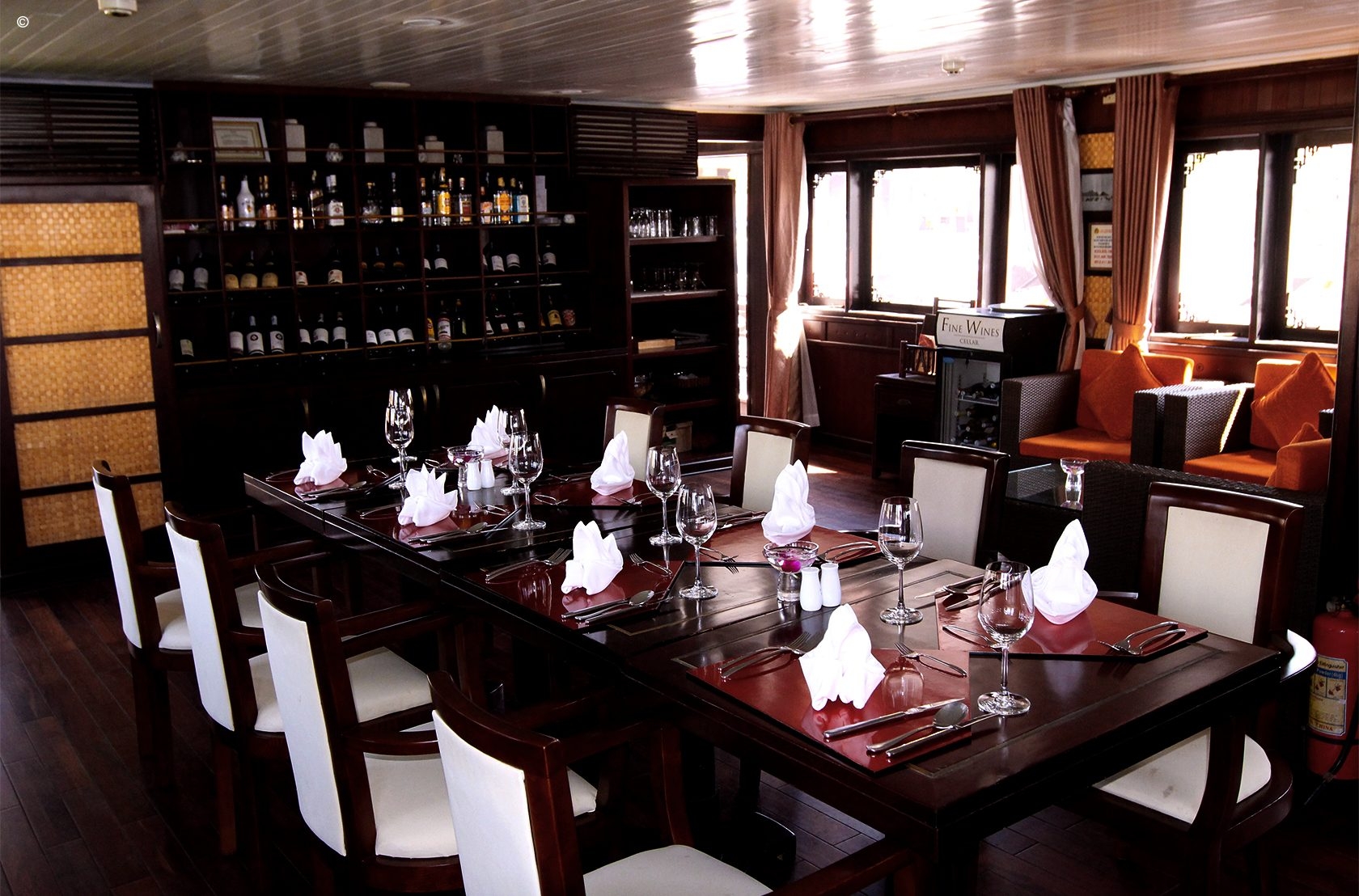 Sleeping eight passengers in total, the ship’s crew of captain, chef, deckhand and hostess will be on hand at all times to fulfill your needs. The teak-lined cabins themselves may be modestly sized, but are furnished in an inviting contemporary-Vietnamese style, complete with double or twin beds, crisp linen, hot-water showers and air conditioning.