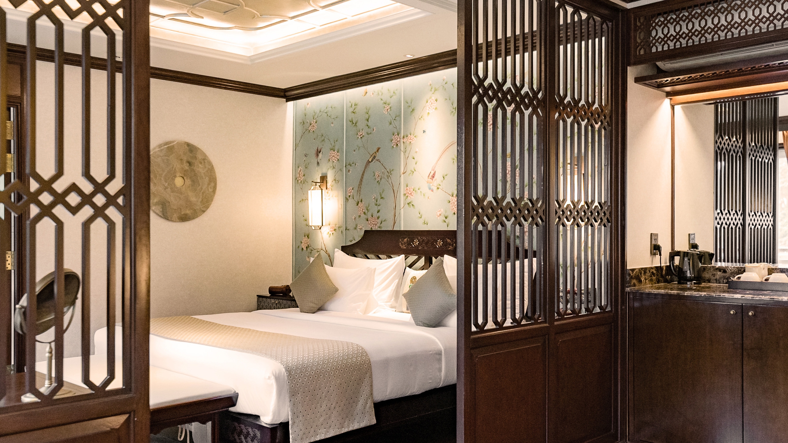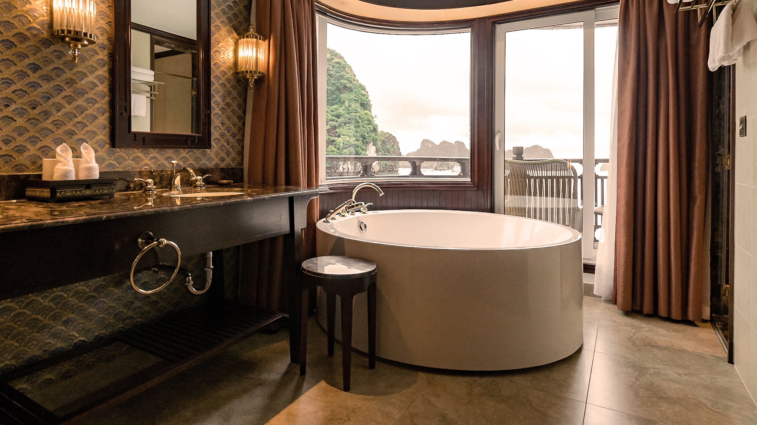 Three decks of polished woodwork, Indochine decor and panoramic views of the UNESCO-protected bay fill this cruiser. Despite its large size, the Ginger is home to just ten cabins, ensuring there is still an intimate atmosphere awaiting you on board.