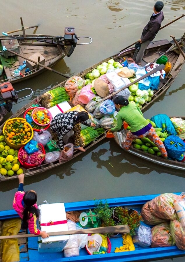 The buzzing cultural and commercial centre of the Mekong Delta, Can Tho sits on the southern bank of the Hua River, one of the Mekong’s main distributaries as it flows out past endless paddy fields into the South China Sea.