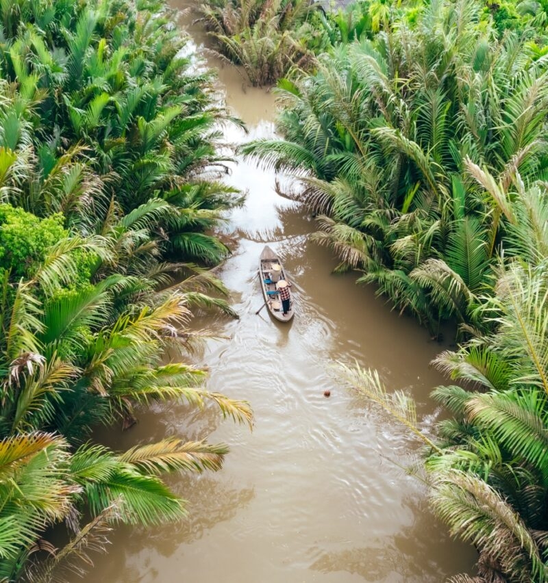 Along the banks of the vast Delta, rice paddies, fruit orchards, fish farms and floating villages depend on the river’s bounty. The Mekong Delta is a bucolic watery landscape of working villages farming rice, fish, sugarcane, fruit and shrimp.