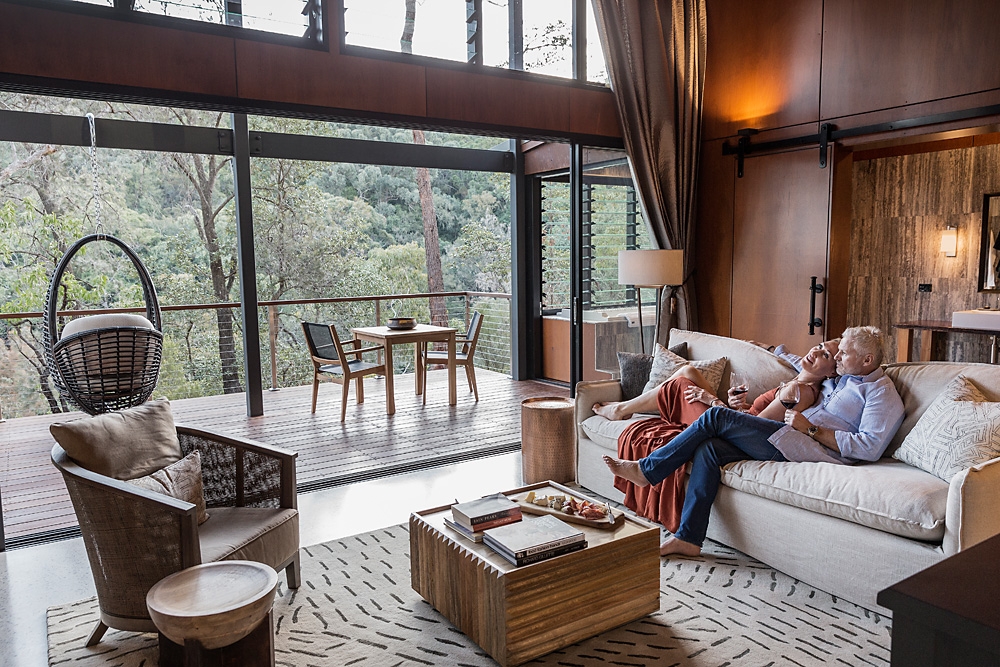 One the edge of the spectacular Blue Mountains of New South Wales, Spicers Sangoma Retreat is a stylish eco hideaway surrounded by a forest of eucalyptus and gum trees.