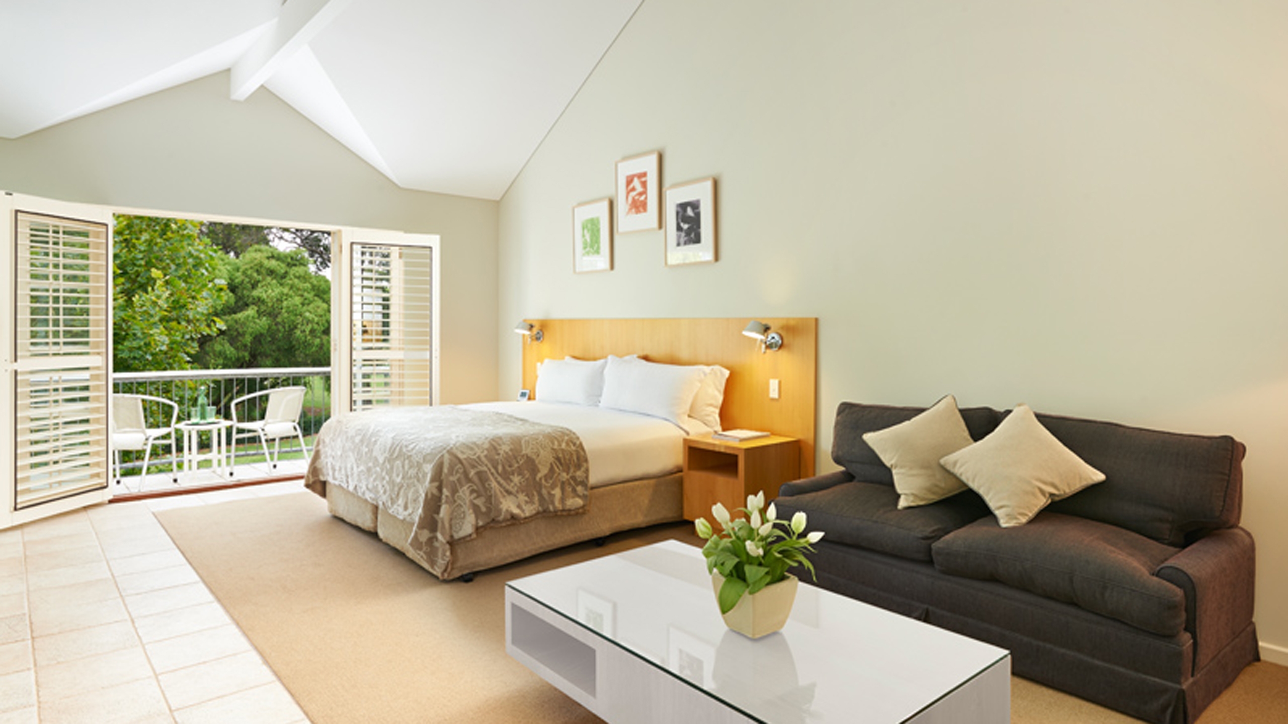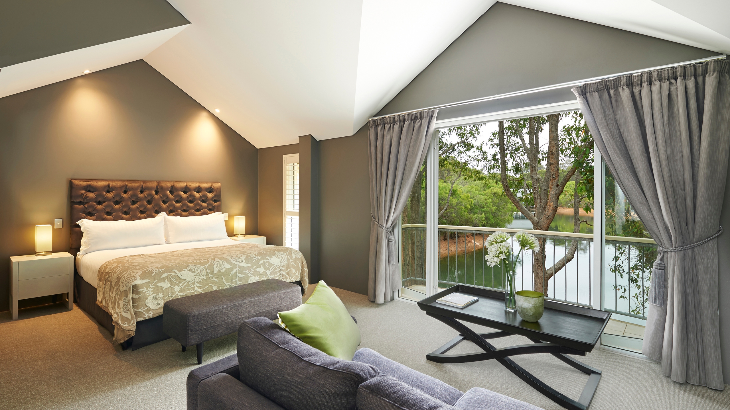 Choose between 22 stylish rooms with serene garden views or lake vistas. Sitting privately on three acres of land, The Private Residence is a secluded haven that can accommodate up to eight people. Interiors are light and understated with an emphasis on beautiful fabrics, marble surfaces, polished timber floors and works by well-known Australian artists.