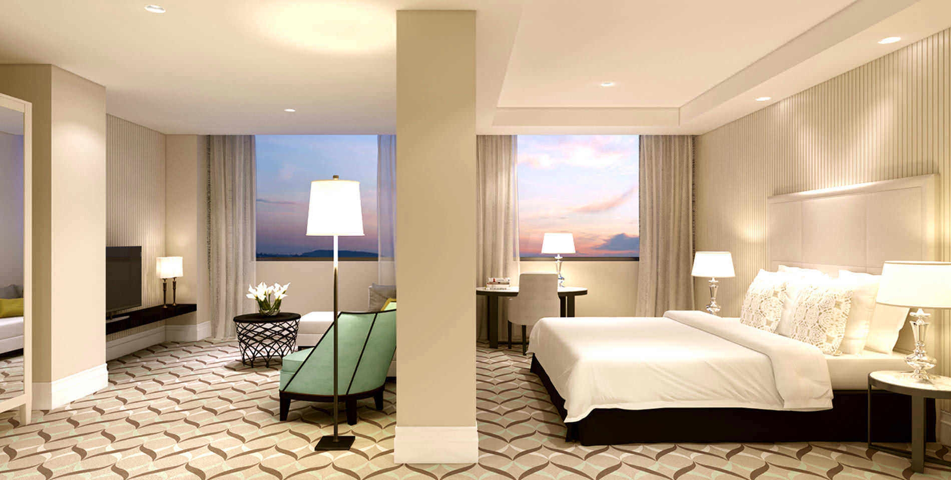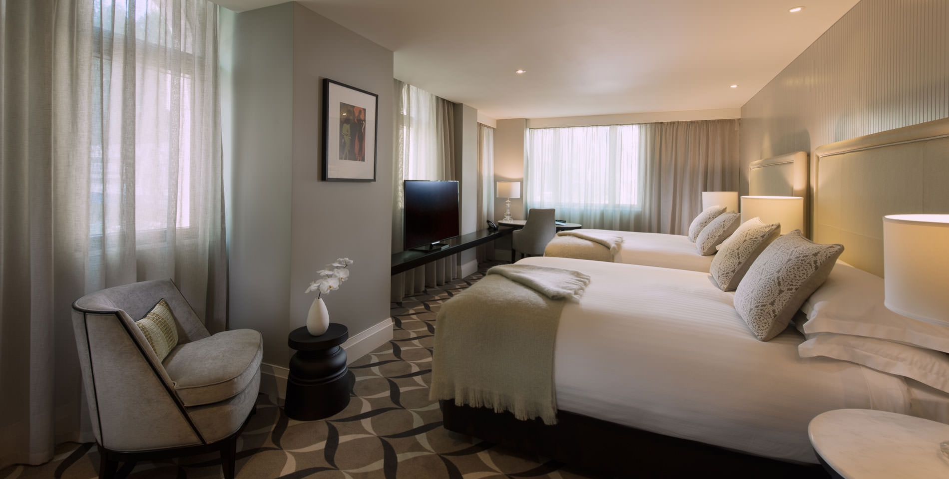 The 170 rooms in the Mayfair are large and modern in design, with comfortable furnishing sure to please the weary traveller. The marble-top desks and handcrafted wood cabinets add a sense of refined charm to your stay.